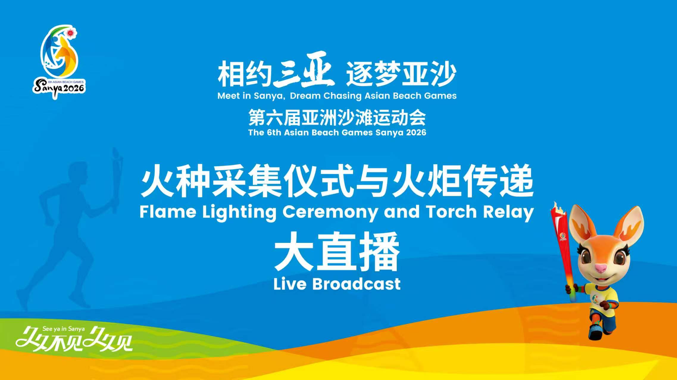 分为三亚河(A区)、三亚湾海月广场(B区)、三亚湾海虹广场(C区)、天涯海角(D区)。沙滩手球、攀岩、沙滩排球等项目在天涯海角(D区)举行。