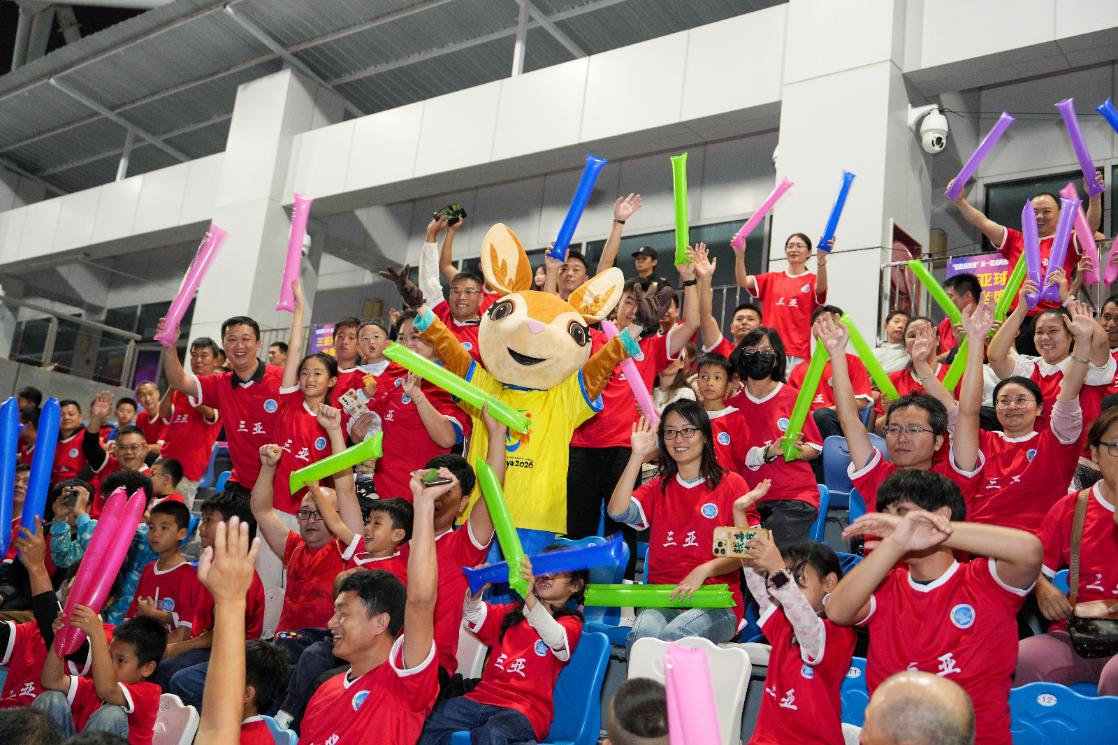 三亚赛区也同步在三亚市体育中心激情揭幕,三亚亚沙会吉祥物“亚亚”亮相燃动全场,为绿茵场上的运动健儿们呐喊助威。