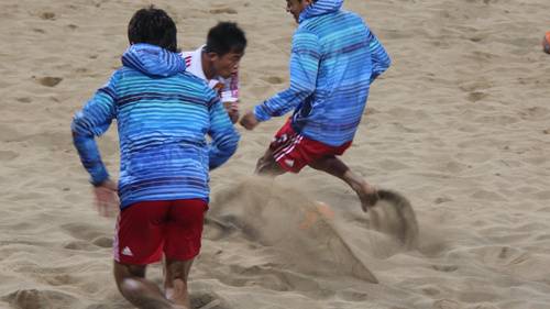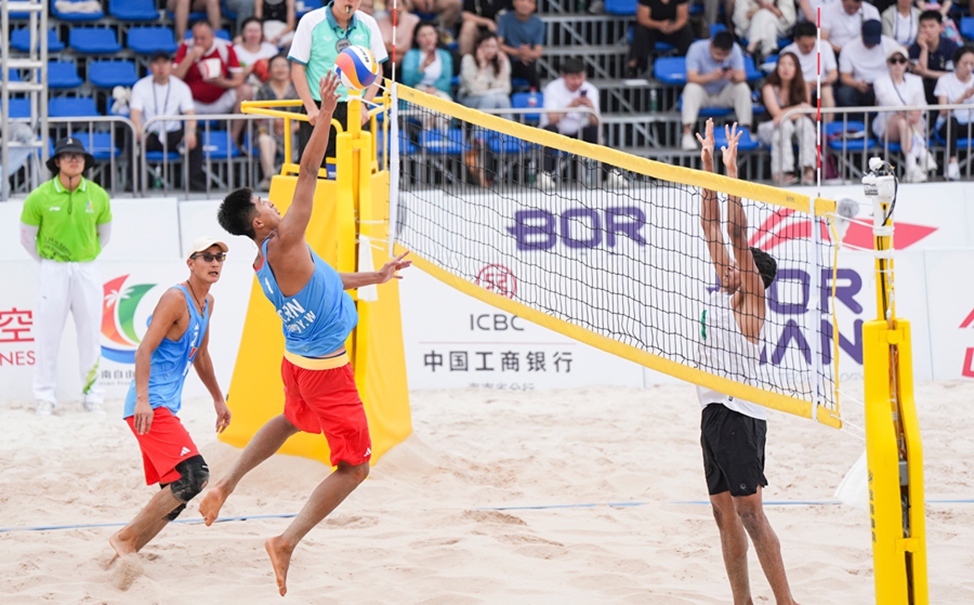 4月24日,第六届亚洲沙滩运动会龙舟女子组100米直道竞速决赛在三亚河赛场打响。