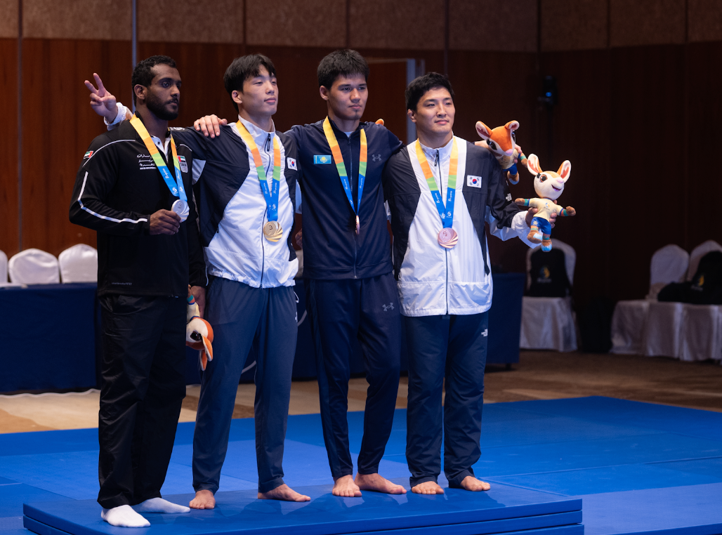 4月25日上午,第六届亚洲沙滩运动会女子水球项目颁奖仪式在海月广场竞赛场馆举行。这是女子水球项目首次登上亚沙赛场,中国队最终夺得该项目历史首枚金牌。哈萨克斯坦队获得银牌,泰国队获得铜牌。