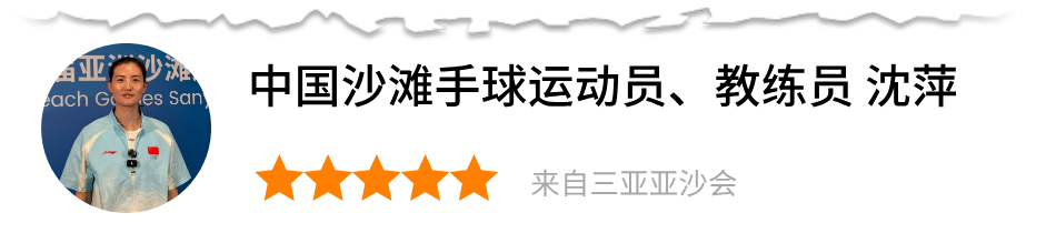 三亚亚沙会是我参加多届亚沙会以来,最好的一个场地、场馆。三亚全年气温适宜开展沙滩运动,三亚亚沙会场馆依山傍水,风景优美,赛场内沙质优良,能有效激发运动员参赛状态。三亚自然环境、人文氛围与赛事保障俱佳,具备承办国内外高水平沙滩运动赛事的条件。