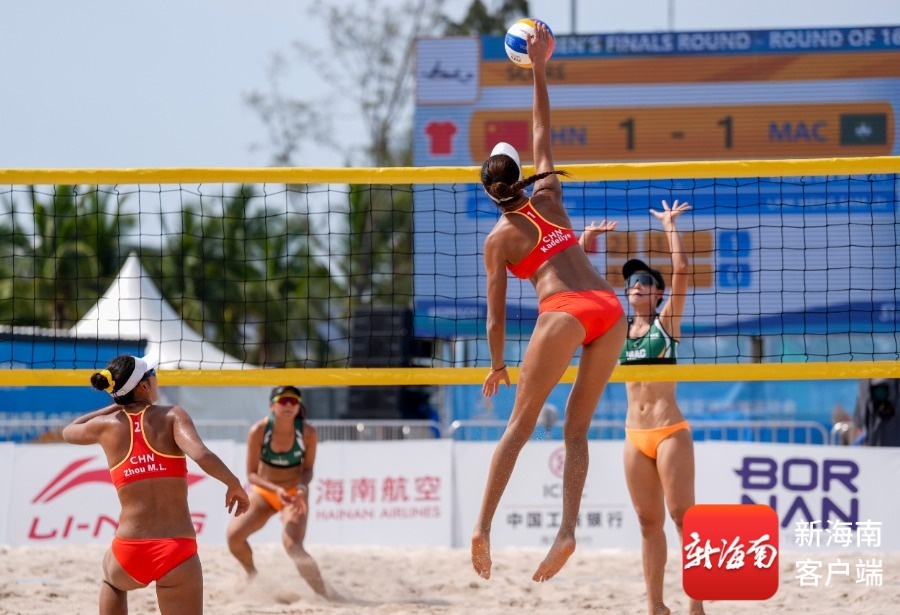 夺冠热门中国组合蒋凯悦/董颉以21:11、21:9战胜印度尼西亚组合努尔・萨里/约瑟芬・凯泽。首局比赛前段,中国组合连续发球得分,逐步拉开分差。随后通过大力扣球、拦网频频得分,最终21:11拿下。第二局中,中国组合同样一路领先,并展现多样得分手段,进而以21:9再下一城。