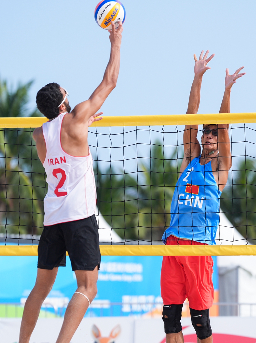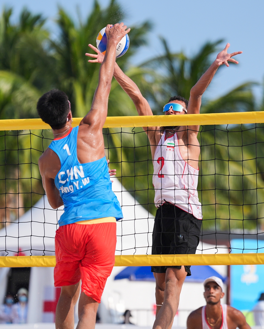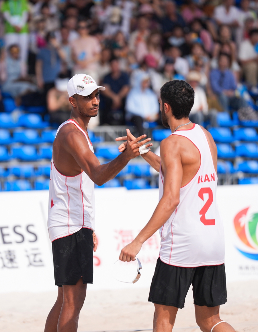 4月26日,在海南三亚举行的第六届亚洲沙滩运动会沙滩排球男子16强淘汰赛中,中国组合王延伟/吴佳欣0比2不敌伊朗组合阿布哈桑·哈基扎德/阿米尔·阿里·加莱赫诺维。