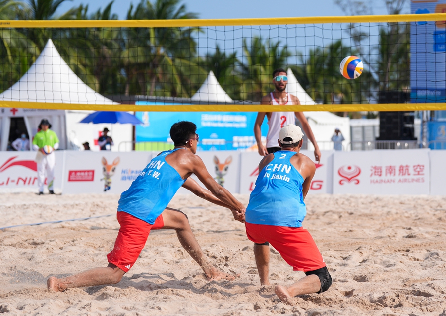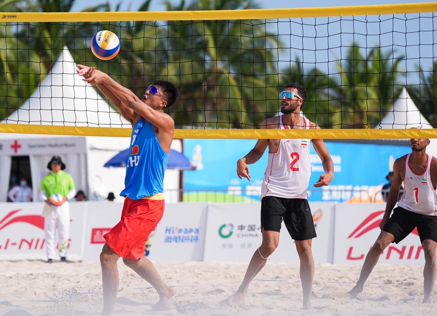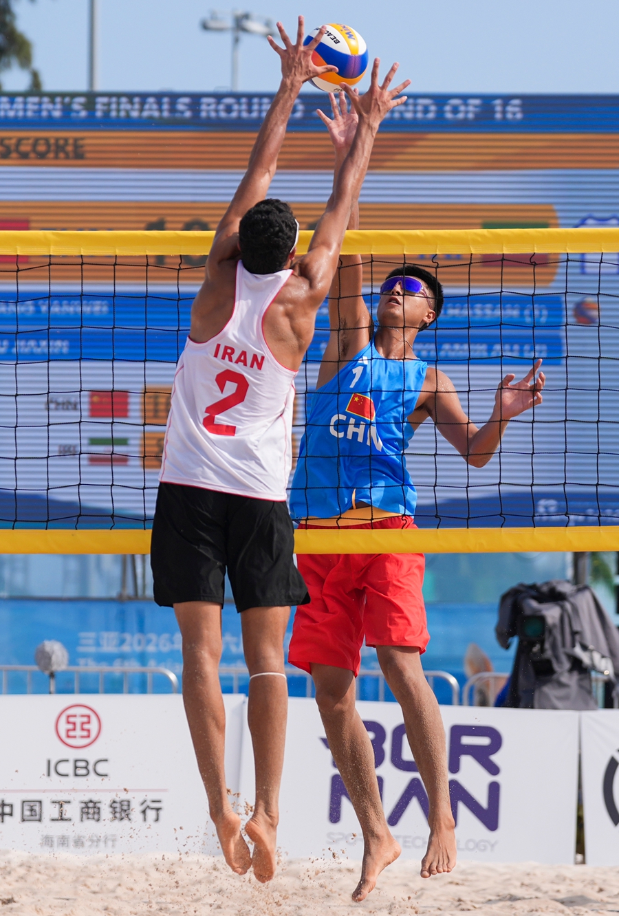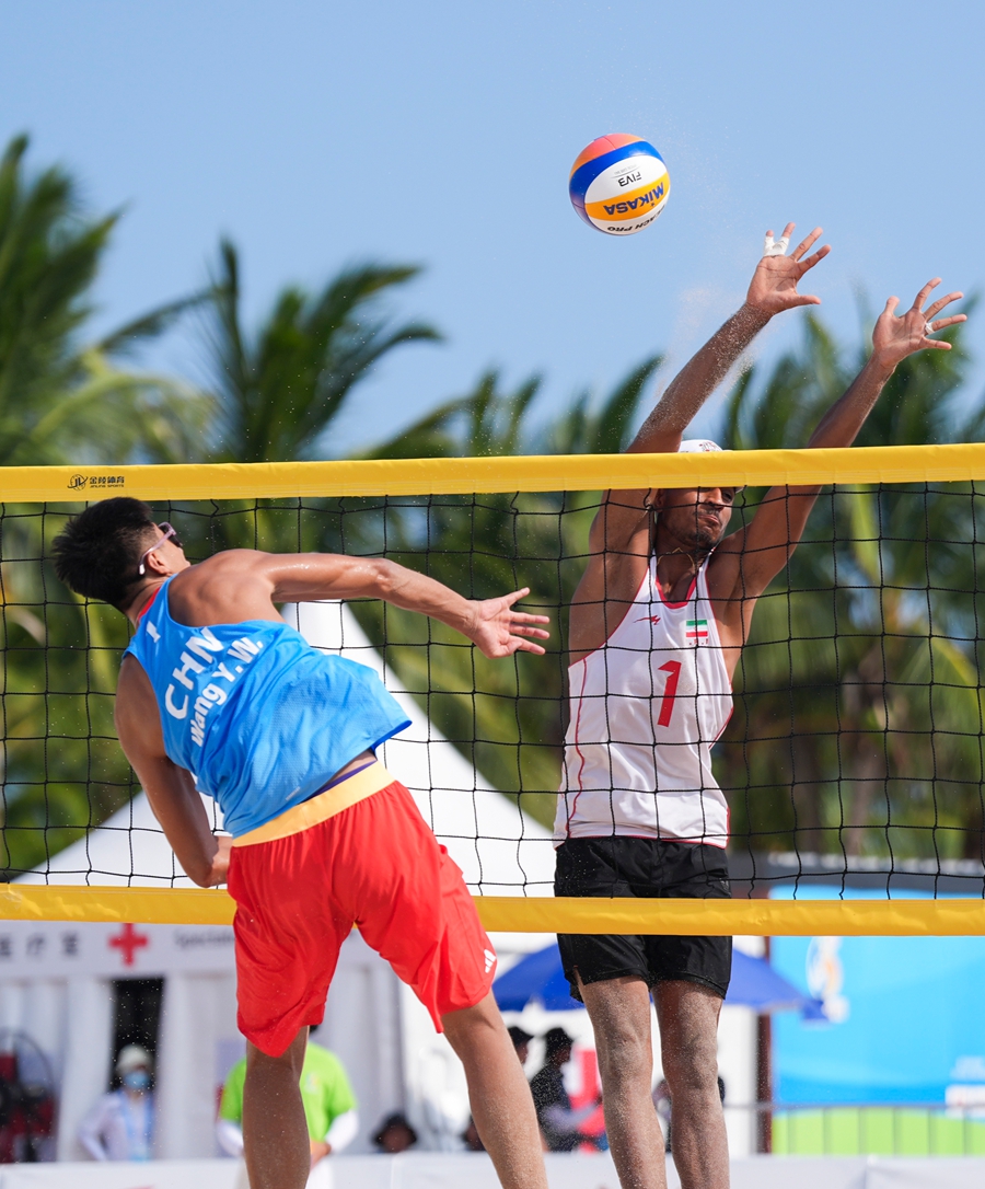 4月26日,在海南三亚举行的第六届亚洲沙滩运动会沙滩排球男子16强淘汰赛中,中国组合王延伟/吴佳欣0比2不敌伊朗组合阿布哈桑·哈基扎德/阿米尔·阿里·加莱赫诺维。