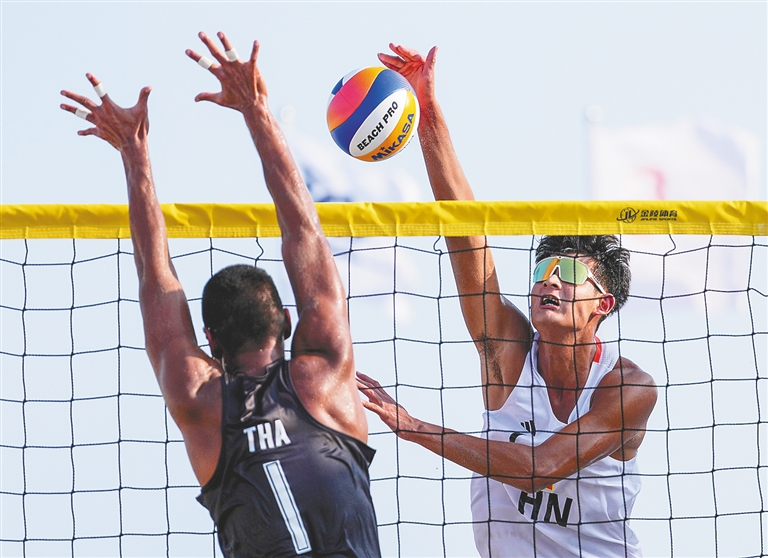 4月26日下午,第六届亚洲沙滩运动会沙滩排球男子组十六强赛战罢。中国男队两对组合一胜一负:张泰/周朝威苦战三局,以2比1逆转战胜泰国组合,成功晋级八强;王延伟/吴佳欣则以0比2不敌伊朗组合,遗憾止步。