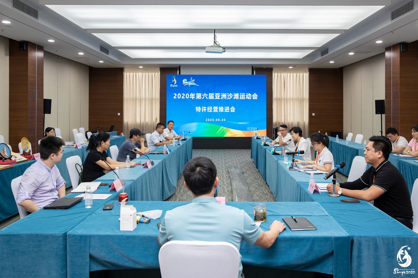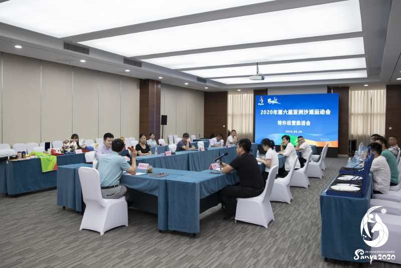 8月20日,2020年第六届亚洲沙滩运动会(以下简称“亚沙会”)组委会工作委员会(以下简称“亚沙委”)召开特许经营推进会,邀请7家特许生产商、特许经销商企业代表,双方就进一步推进亚沙会特许经营工作充分开展交流。亚沙委副秘书长沈德安主持会议。