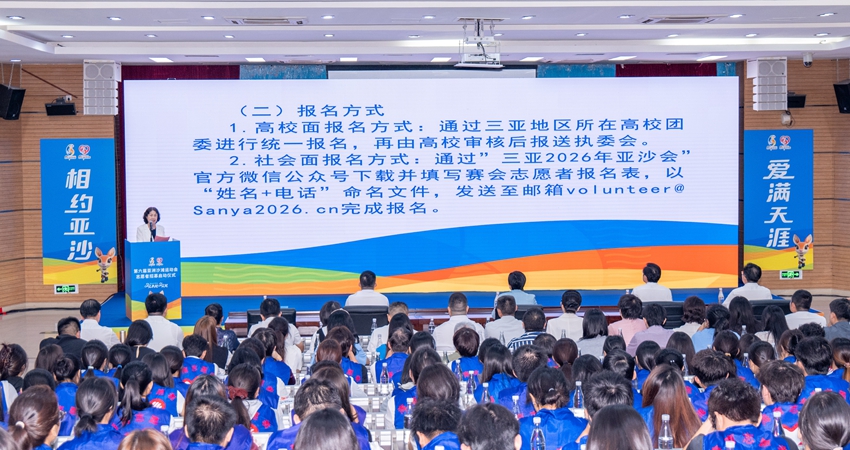 9月15日上午,2026年第六届亚洲沙滩运动会(以下简称:三亚亚沙会)志愿者招募启动仪式在海南热带海洋学院举行。