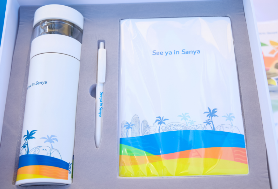 在三亚亚沙会执委会办公所在地特许经营门店,记事本、咖啡杯、保温瓶、服装等特许商品琳琅满目,整齐摆放在主题展台上。鲜明的色彩搭配、统一的视觉设计,使整个展厅洋溢着浓厚的亚沙氛围,令人仿佛置身于阳光沙滩的运动盛会中。