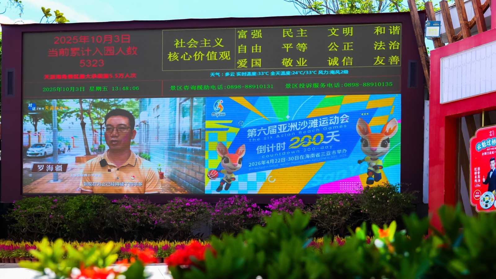 在三亚大悦城、夏日百货、海旅免税城及天涯海角游览区、鹿回头风景区等主要商超和景区,LBD大屏高频次播放三亚亚沙会宣传视频,三亚亚沙会主题美陈打卡点也吸引了不少市民游客互动参与。