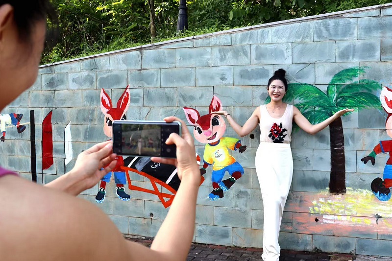 公交公司推出亚沙主题车辆,成为流动的城市风景线;文化系统组织志愿者绘制主题墙,邀请市民游客留下祝福;户外大屏和楼宇灯光秀亮起,让“亚沙元素”点亮鹿城每一角落;随风飘扬的灯杆旗,在三亚街头巷尾都能偶遇“亚沙”……