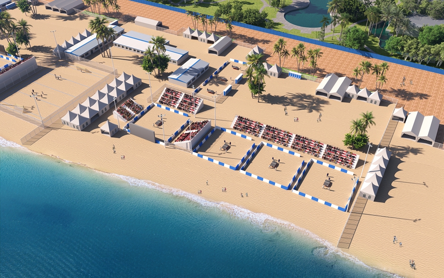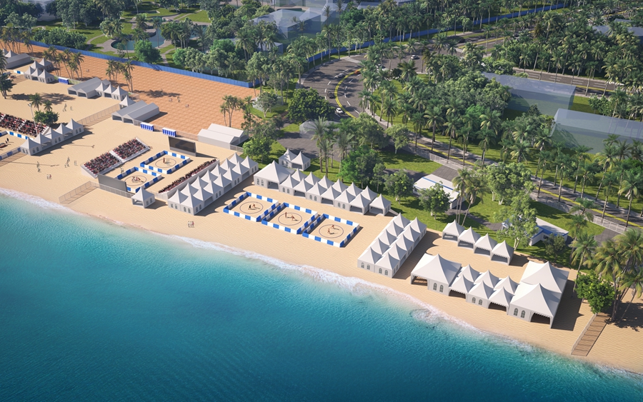 沙滩手球竞赛项目效果图。(场馆搭建以实际为准)
