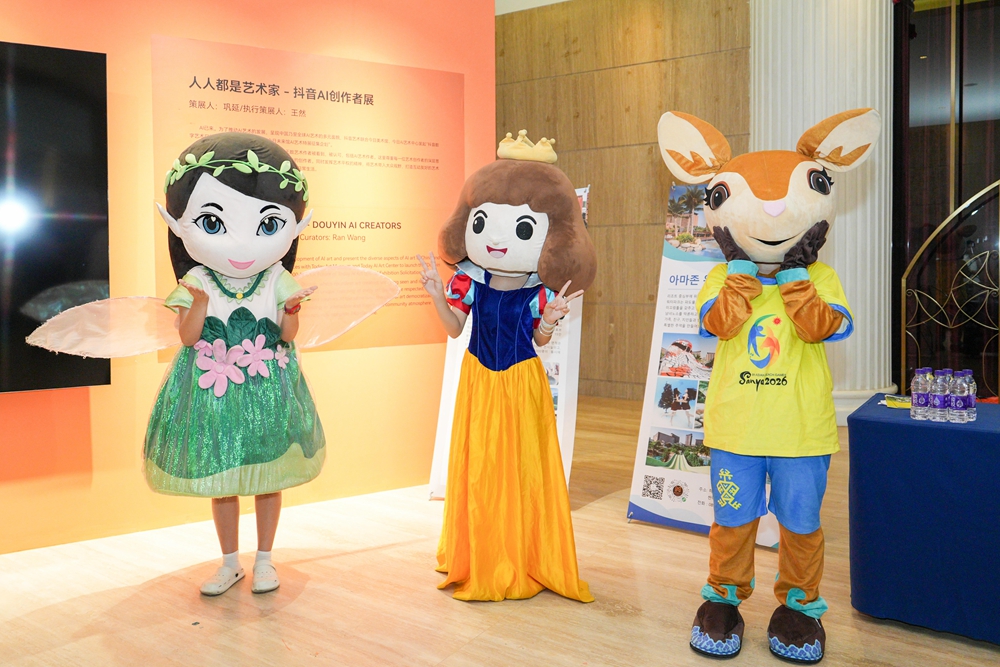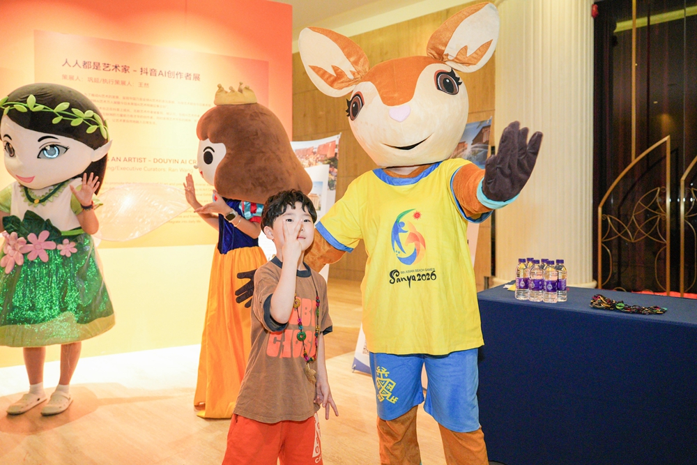 活泼可爱的“亚亚”与韩国知名IP玩偶热情互动,演绎了一场跨越国界的文化对话,引得宾客纷纷举起手机记录这一精彩瞬间。会场特别设置了合影打卡区,宾客们与“亚亚”同框,留下难忘记忆,为明年4月在三亚举办的亚沙会成功预热。