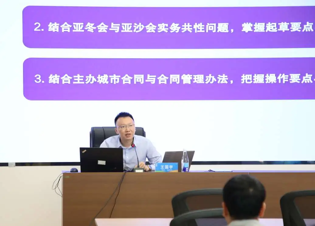 1月30日,第六届亚洲沙滩运动会(以下简称“三亚亚沙会”)执委会组织开展“合同实务指引及操作要点”专题法律培训,各场馆财务主管、执委会各合同承办部门工作人员齐聚执委会会议室参训,系统学习合同管理核心知识与实操技能,共同筑牢赛事合同的合规防线。