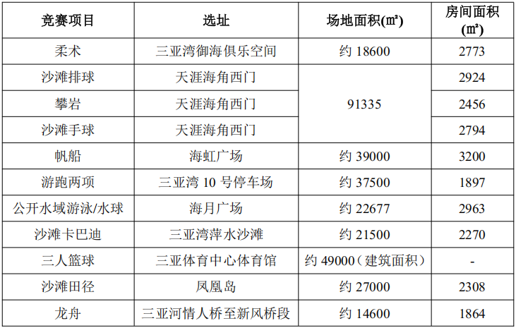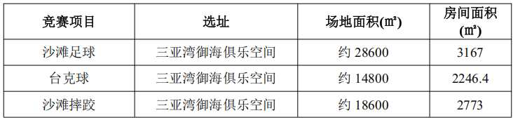 二、亚沙会各竞赛场馆面积概况