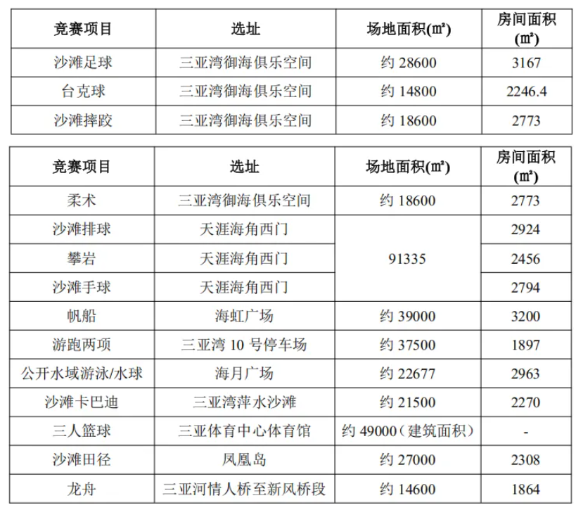 关于第六届亚洲沙滩运动会竞赛场馆场地