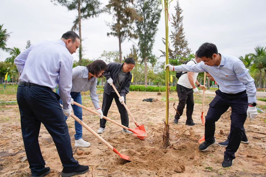 3月12日上午,中共第六届亚洲沙滩运动会执行工作委员会临时委员会组织各党委委员和各党支部书记前往三亚崖州湾海洋休闲运动公园开展义务植树活动。