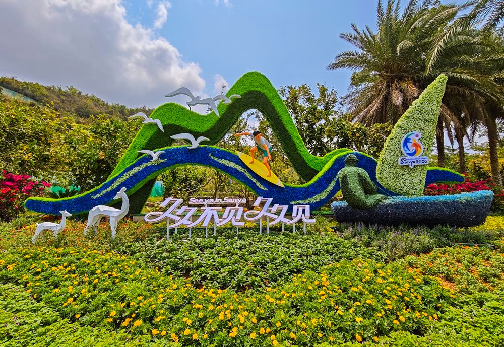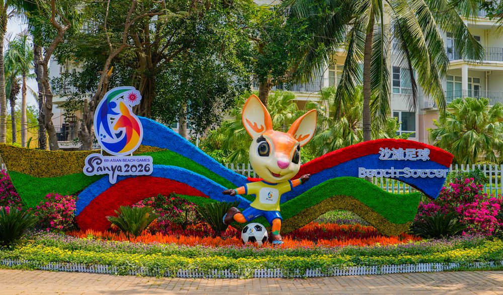 三亚城运集团园林公司副总经理孙乐帆介绍,三亚城运集团以三亚亚沙会场馆及沿线为核心,辐射三亚市范围内的交通枢纽与重要区域,通过绿雕、小品、花境等多种形式组合扮靓城市。“此次布置中,我们打造9组主题绿雕小品,将三亚亚沙会会徽、吉祥物及口号融入景观设计,并结合沙滩足球、三人篮球、帆船等竞赛项目造型凸显主题;同时以三角梅和应季花卉为主材,搭配贝壳、海星等海洋元素,展现三亚滨海特色。”