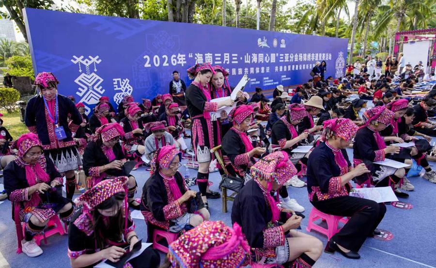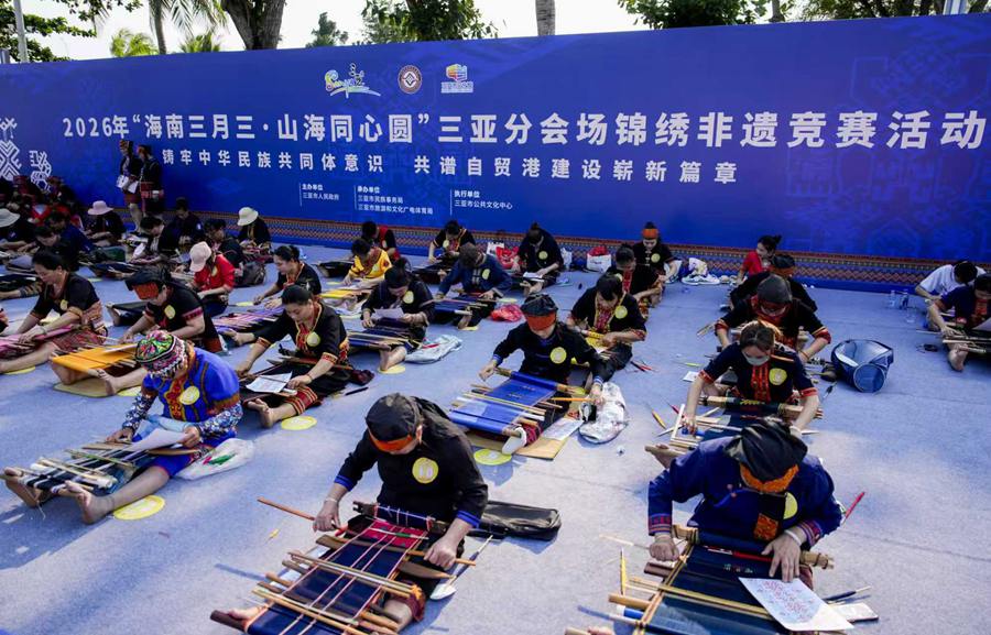 4月17日,2026年“海南三月三·山海同心圆”三亚分会场锦绣非遗技艺展演,在大东海广场盛大启幕。国家级、省级、市级黎族苗族非遗项目集中惊艳亮相,与亚沙会展位彼此映衬、相得益彰,千年非遗技艺与亚沙时尚风情奇妙碰撞,为即将开幕的亚沙会,铺就了独具海南本土特色的厚重文化底色。
