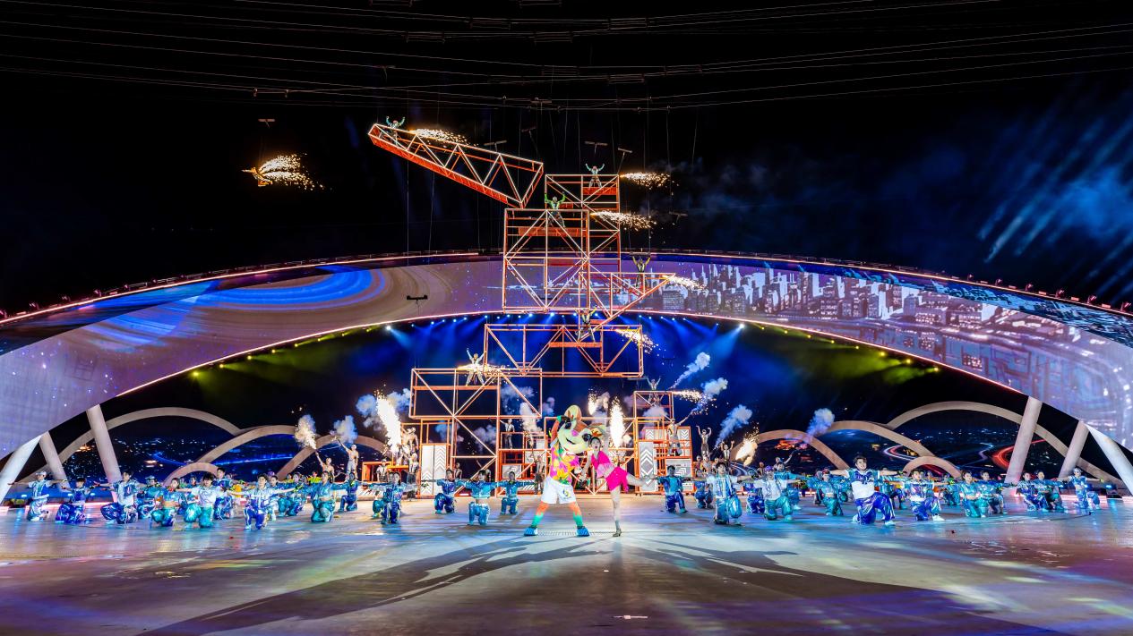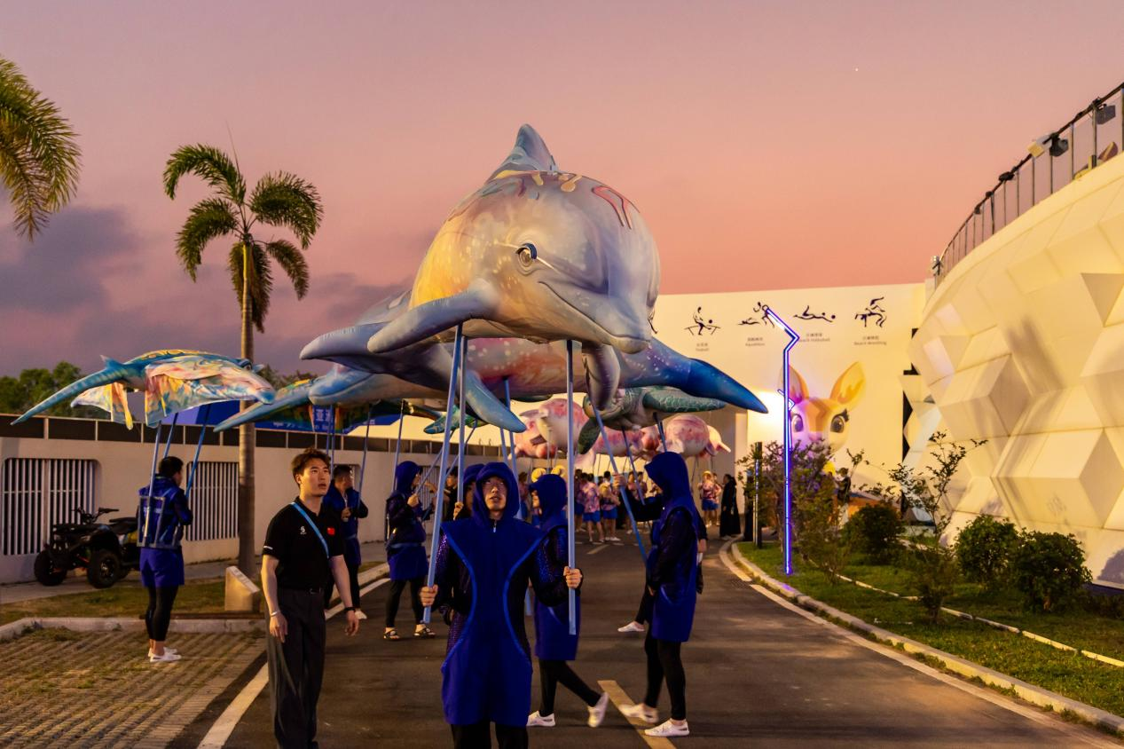 执行总导演吴宪介绍,800余名演出志愿者中超80%为海南本地大学生,团队采取“两班倒”、场内外同步排练模式,仅用三四十天便完成合成联排彩排。“我给孩子们的配合度打满分!”