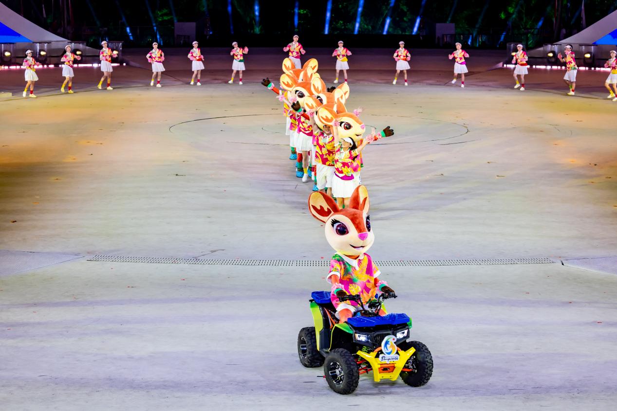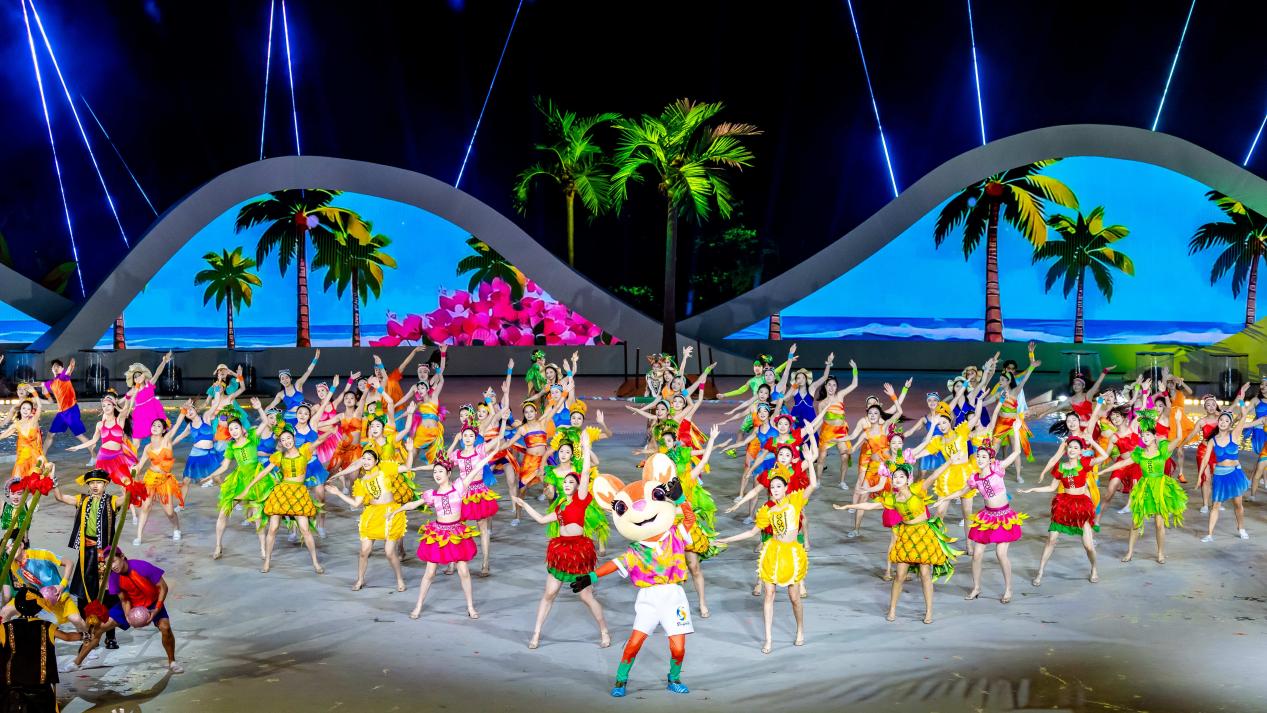 执行总导演李洋表示,舞蹈编排打破常规大型活动做法,大胆融入戏剧性与喜剧性表演内容,展现“青春、活力、开放”的海南形象。仪式总导演王立媛详解运动员入场环节,引导员手持冲浪板,身着海南特色服装踏着轻快步伐;50余只吉祥物“亚亚”身着岛服,骑沙滩摩托车穿梭,甚至充当“秩序管理员”调控代表团行进速度。