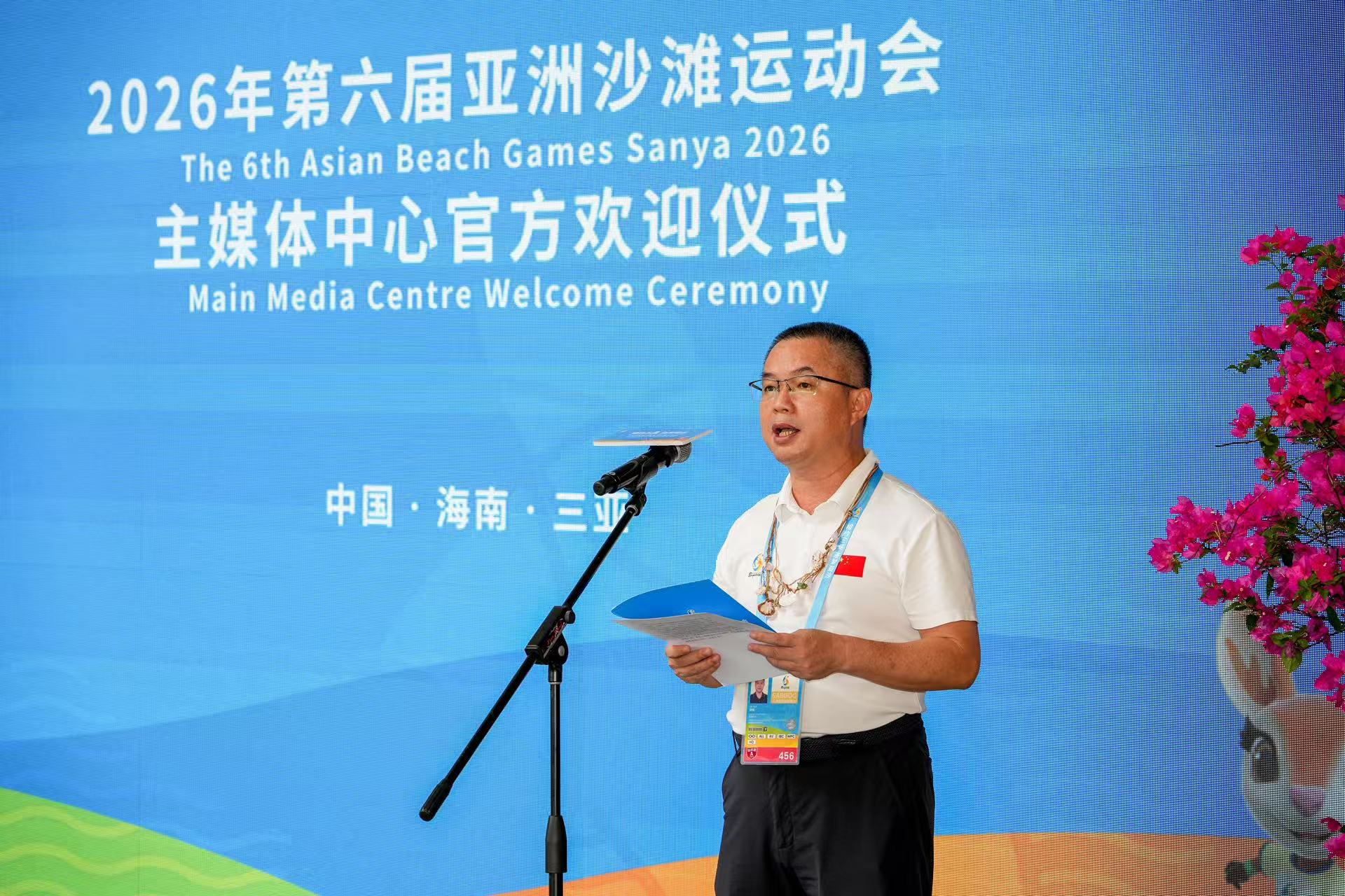 三亚市委宣传部副部长、新闻宣传指挥中心副指挥长、京海/君达酒店点长林辉向所有注册媒体记者致以热烈欢迎和诚挚问候,他表示主媒体中心作为三亚亚沙会媒体服务核心枢纽,已全面准备到位,将以优质便捷服务陪伴广大媒体朋友记录亚沙精彩、传播三亚魅力。