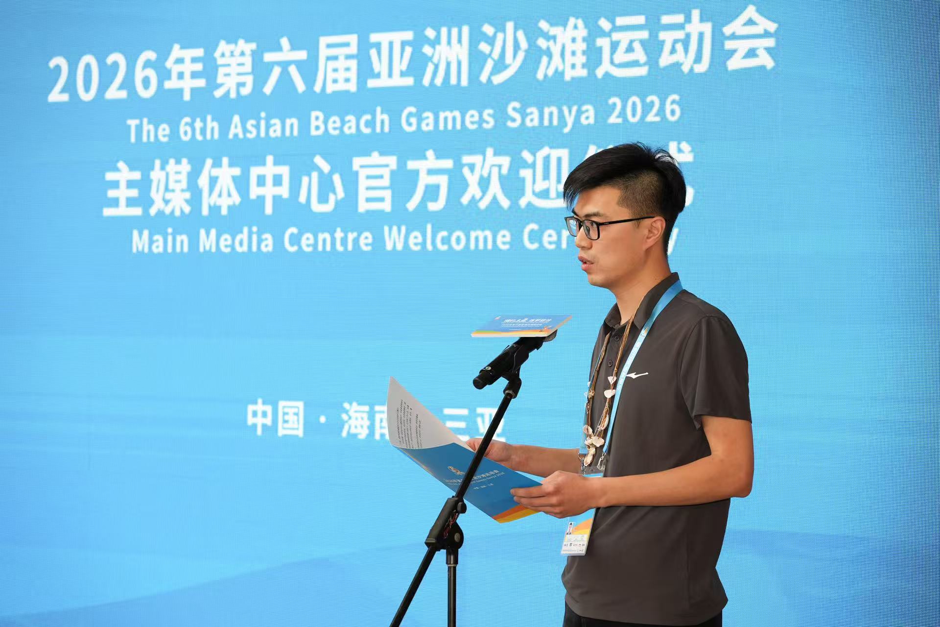 新华社摄影部体育组副主任徐子鉴代表媒体记者现场发言,表达了将全力以赴记录亚沙会的精彩瞬间,向世界传递亚沙激情与海南开放魅力的决心,让世界读懂三亚、读懂海南、读懂中国,感受体育的蓬勃活力与文明的多元魅力。