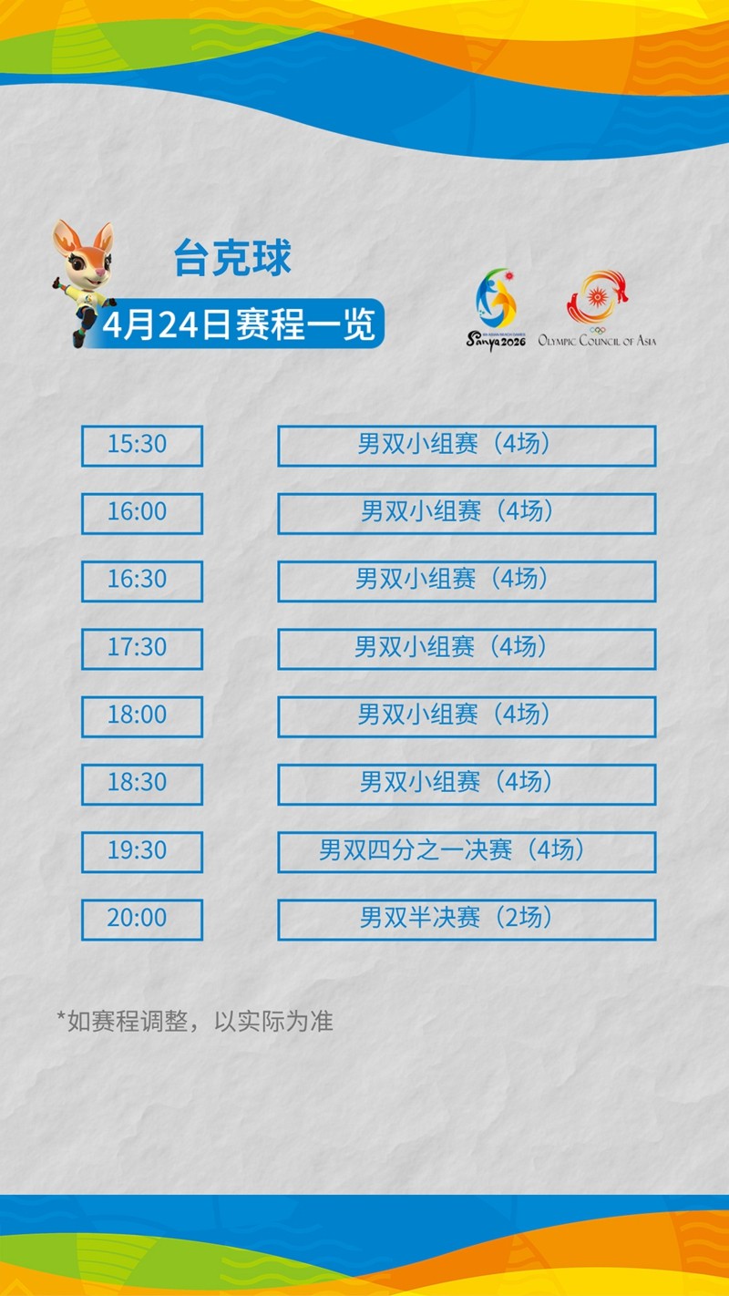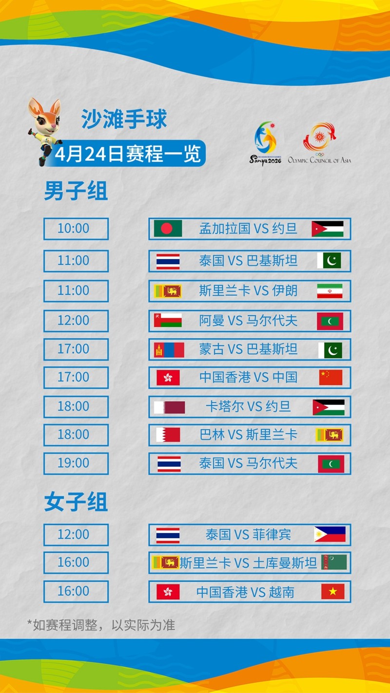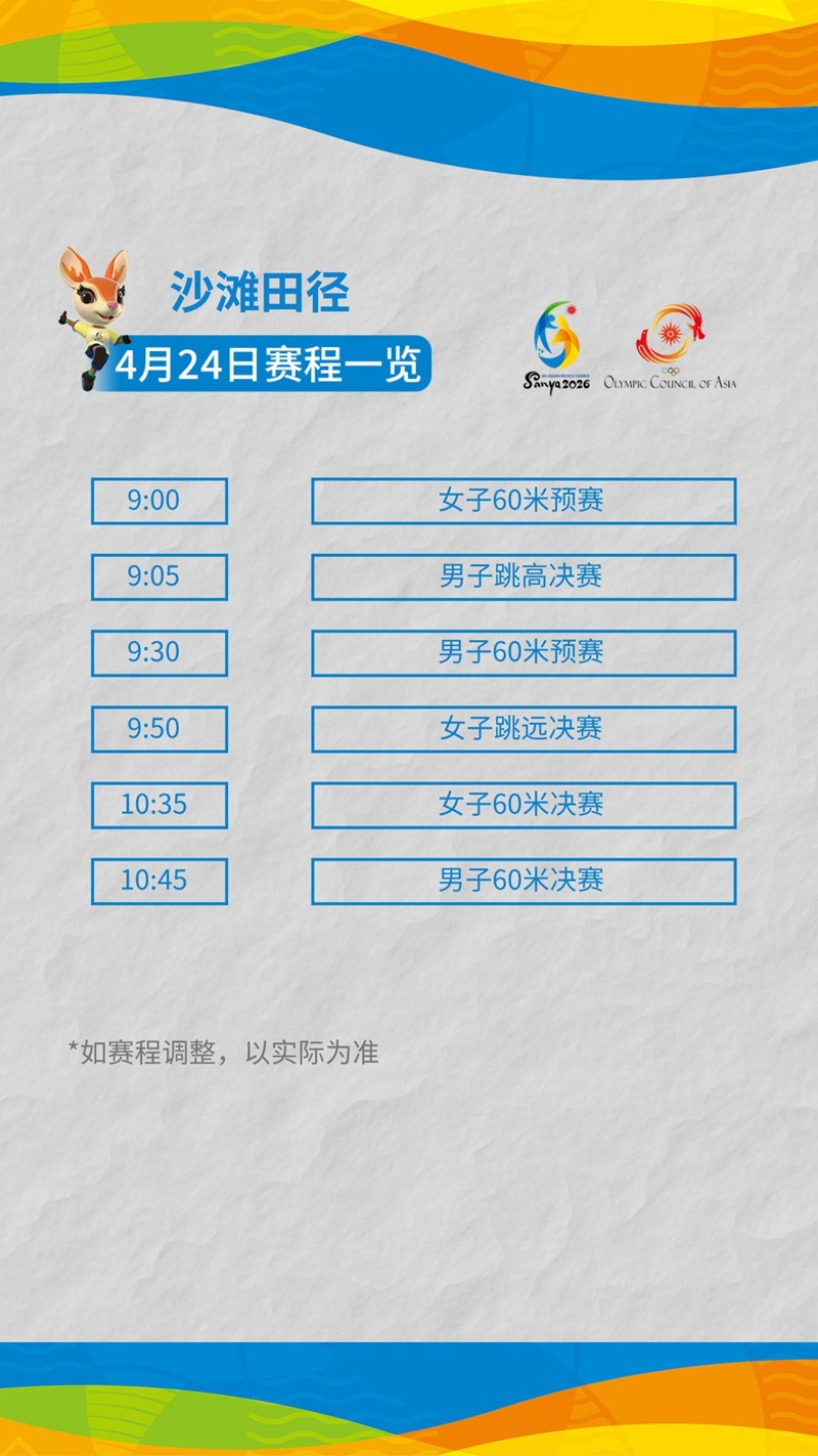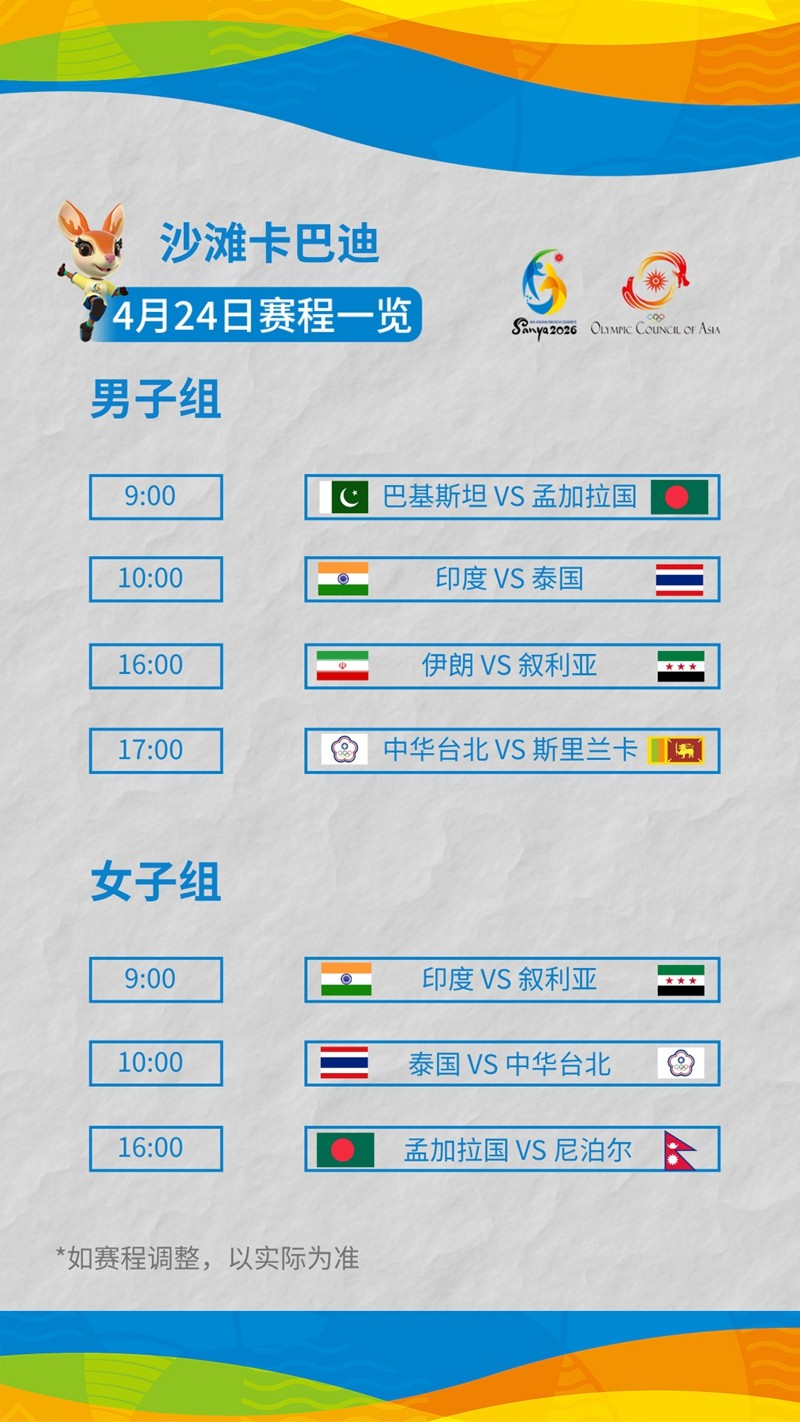 4月24日水球、沙滩田径、龙舟、柔术等项目将产生共10枚金牌。