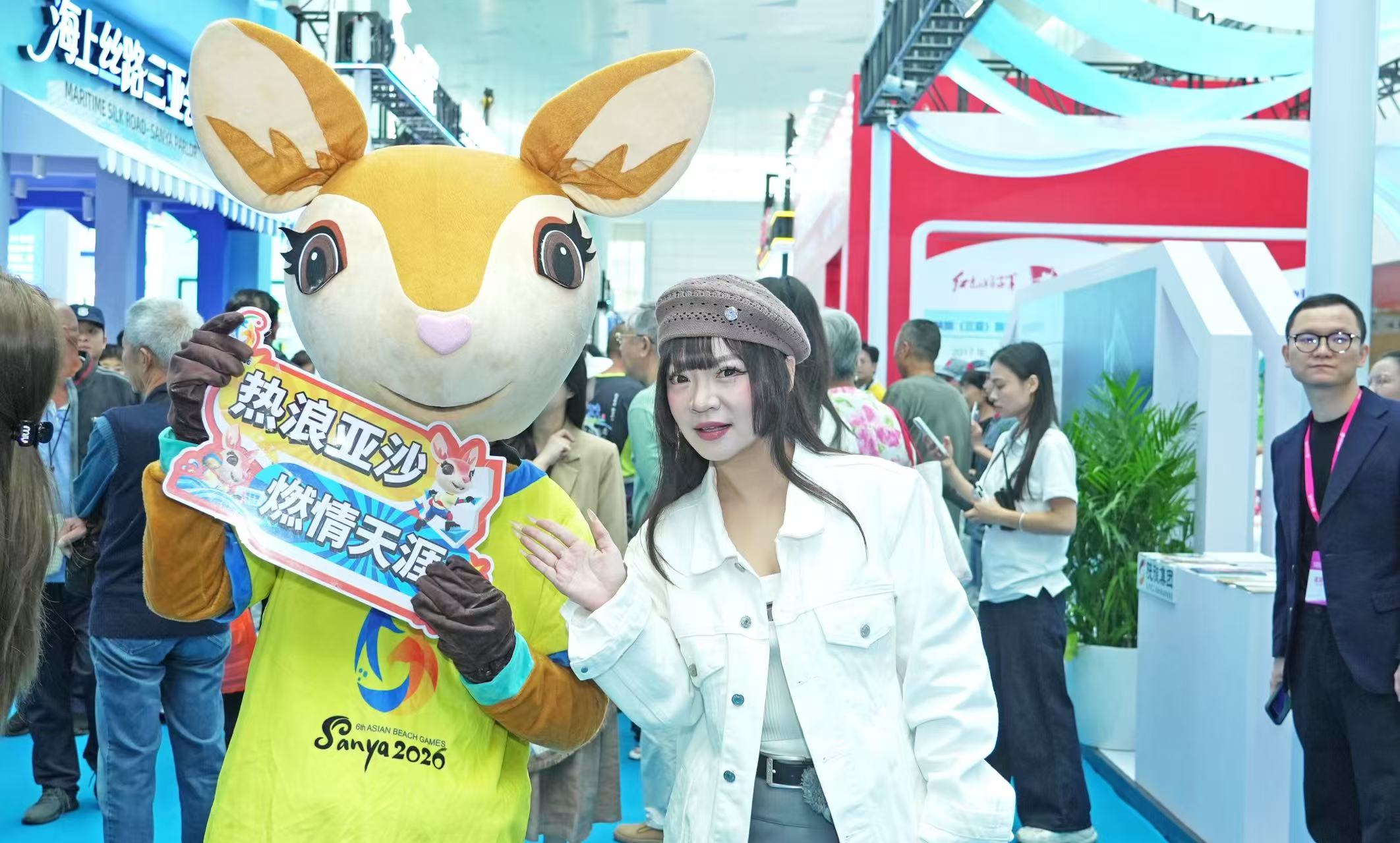 三亚亚沙会吉祥物“亚亚”化身展馆的“活力向导”,穿梭于各个展区。它时而热情指引市民游客打卡特色展区、解锁文旅好物,时而主动上前与大家亲切互动、摆拍合影,憨态可掬的模样圈粉无数,更让三亚亚沙会的活力形象深入人心,进一步拉近了赛事与公众的距离。