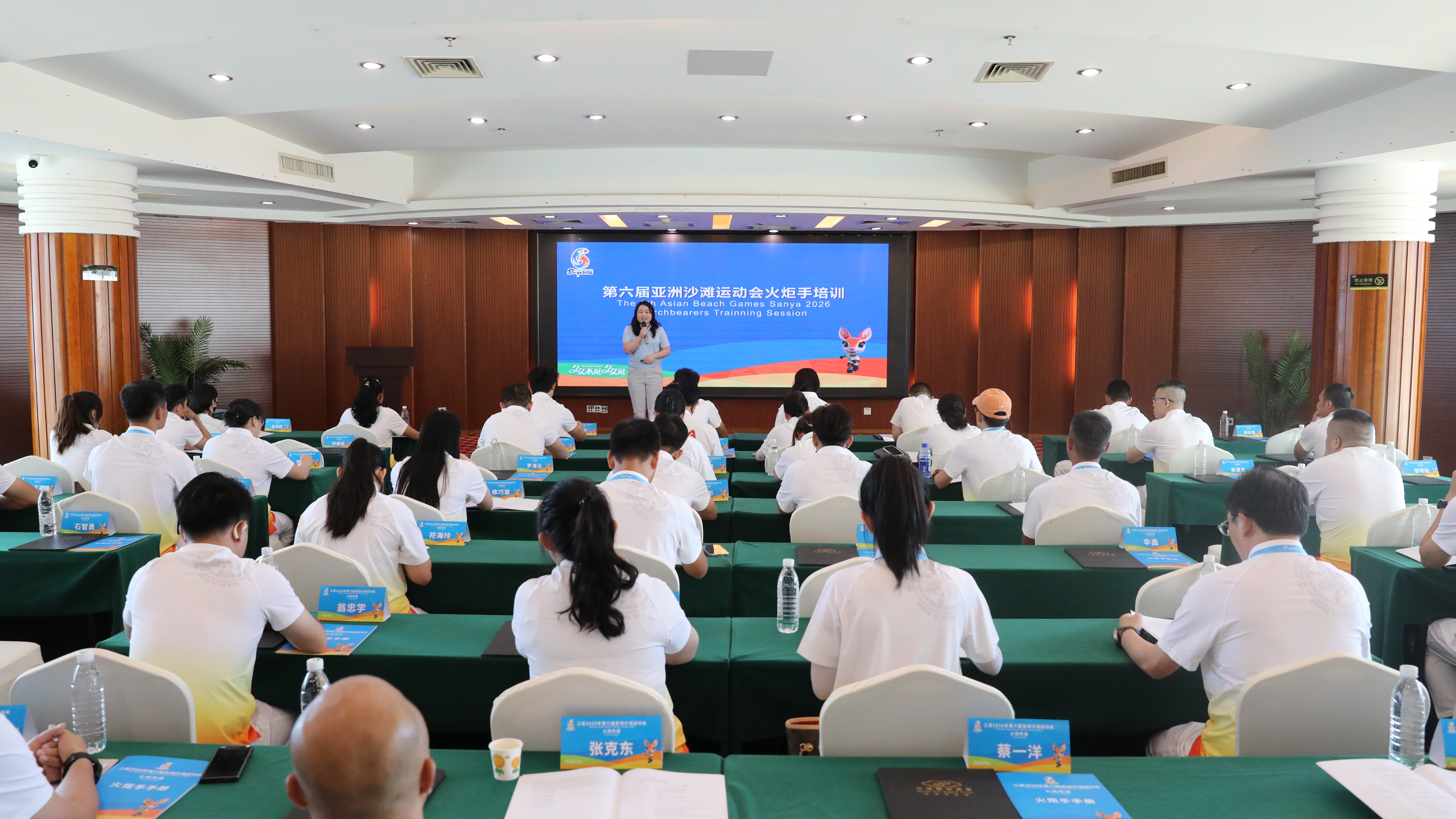 3月28日下午,第六届亚洲沙滩运动会火炬手培训在三亚举行。