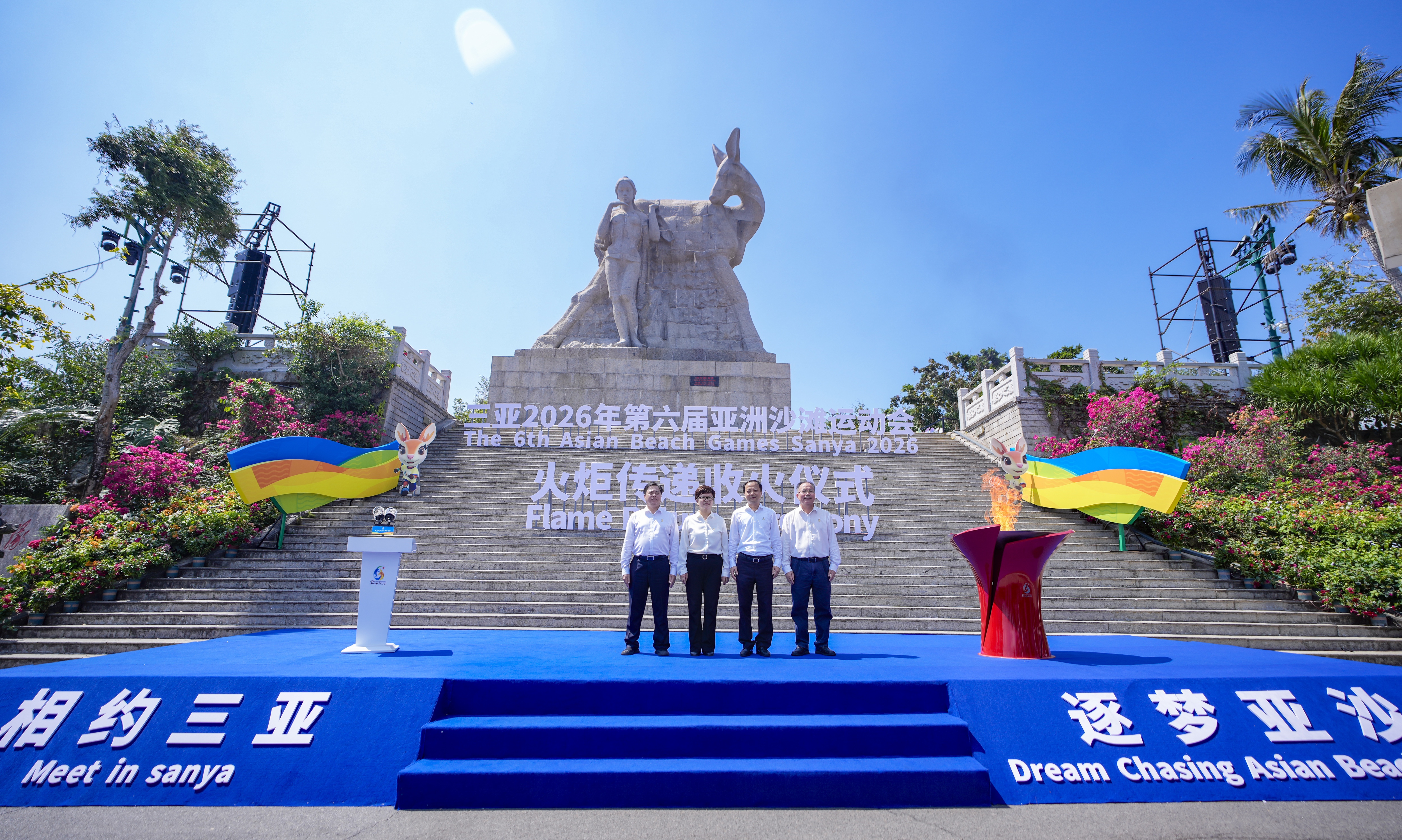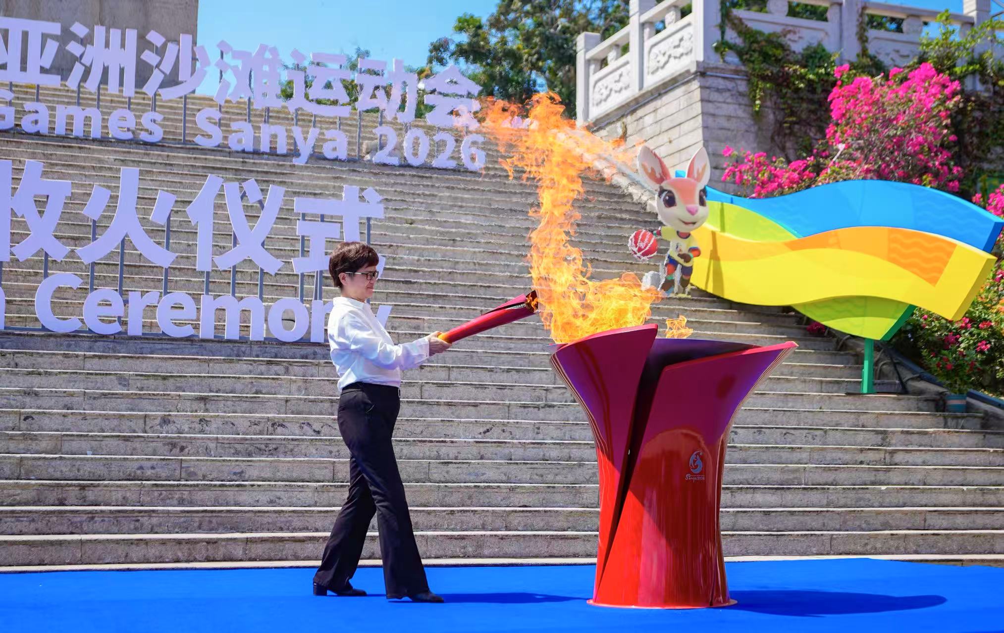 3月30日,第六届亚洲沙滩运动会火炬传递活动收火仪式在鹿回头风景区举行。