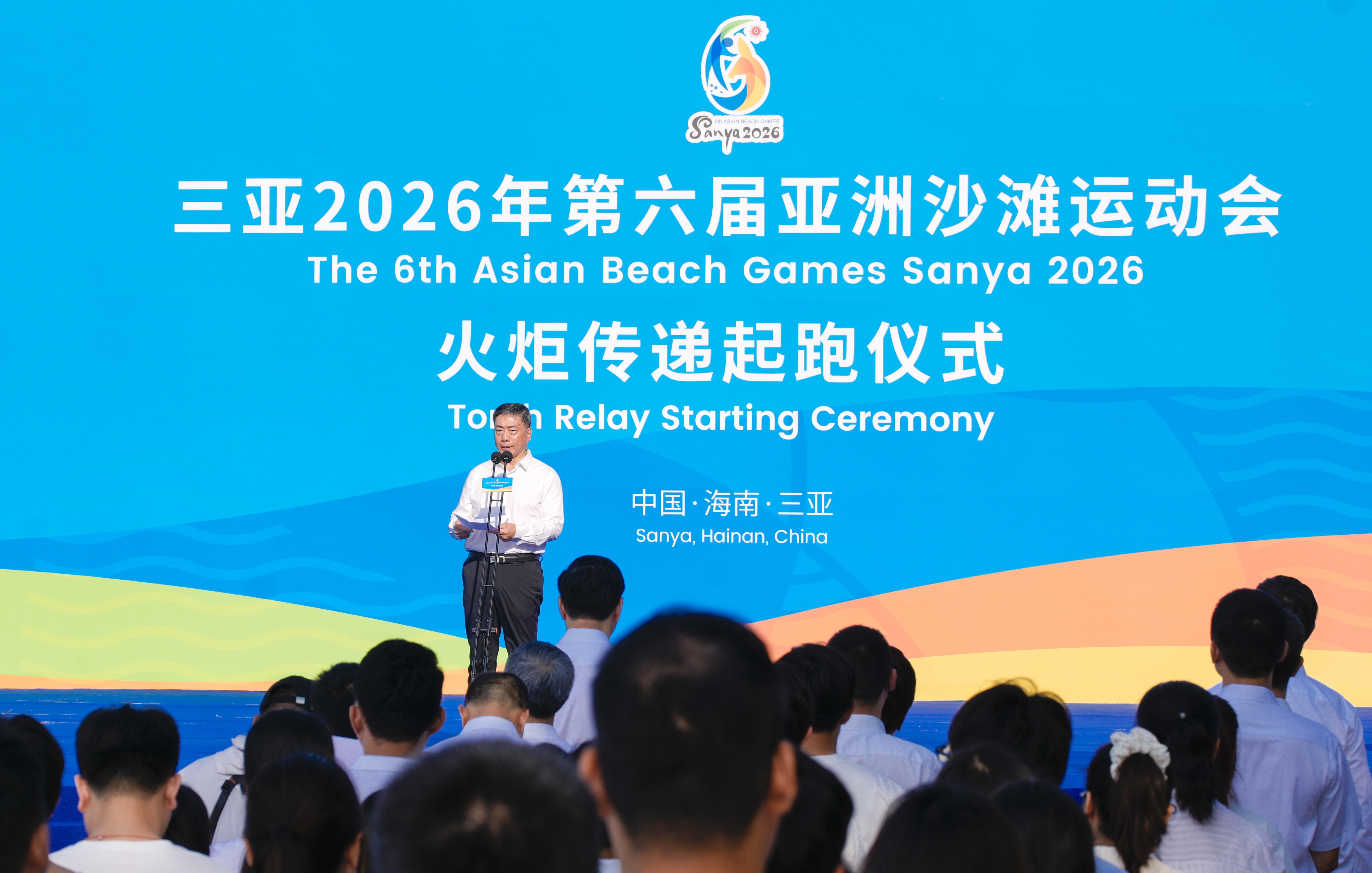3月30日,第六届亚洲沙滩运动会火炬传递活动在三亚举行。图为火炬传递起跑仪式现场。