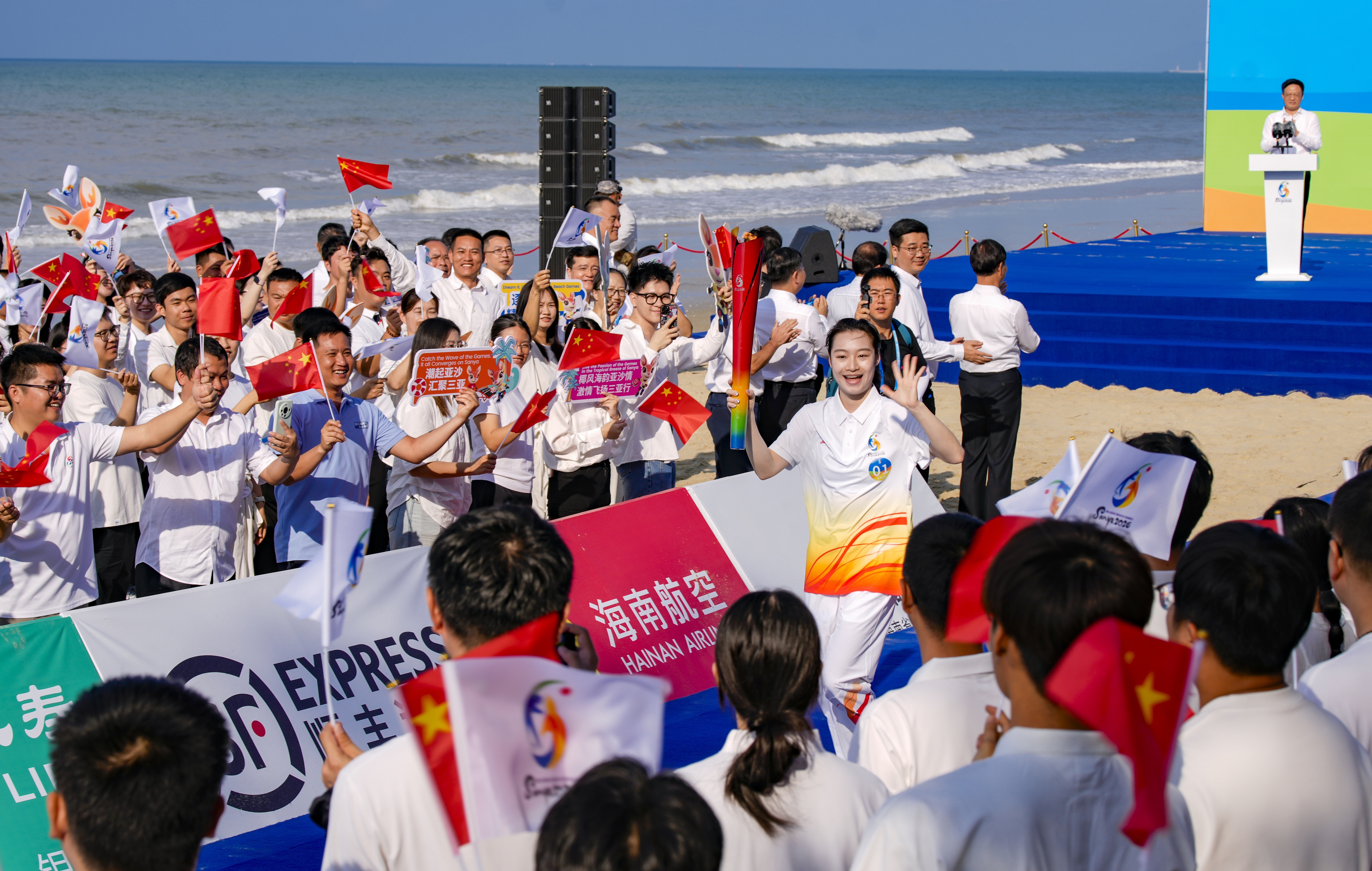 3月30日,第六届亚洲沙滩运动会(以下简称“三亚亚沙会”)火炬传递活动在三亚举行。本次传递以“传递友谊 相约三亚”为主题,设置火种采集、起跑仪式与收火仪式三个核心环节。74名火炬手接力奔跑,串联起约10.5公里的三亚湾沿线景观,共同呈现了一场融自然风光、城市活力与体育激情于一体的预热盛典。