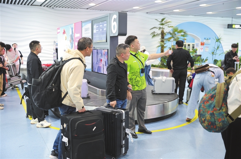 面对赛事期间密集的航班起降与各类要客运输需求,三亚机场对航班信息管理、机位资源分配进行了周密部署,根据“容流平衡、动态调整、分批制定”的原则,科学合理统筹亚沙会保障航班,动态调整航班时刻,助力涉赛人员抵离高效顺畅;机场提前对接赛事组委会,安排专人精准识别运动员托运行李,并增派志愿者协助提取;开设三亚亚沙会专用值机柜台及专属安检通道并配备支持45国语言实时互译智能翻译机,助力工作人员与外籍参赛运动员实现顺畅沟通,实现涉赛人员通关“零障碍、高效率”。