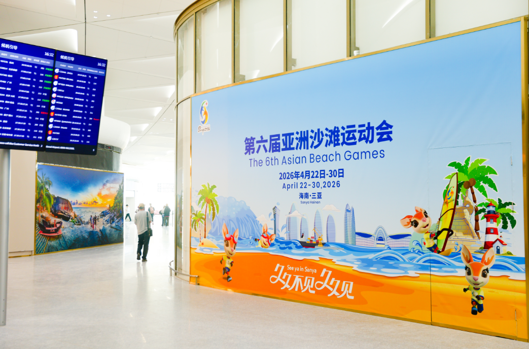 游客王先生说,“这些海报充满活力,看着就很有感染力,能感受到三亚的迎赛氛围很足!期待到时候能来现场看比赛。”作为三亚的城市重要窗口,在全新T3航站楼集中展示亚沙元素,正是赛前城市氛围营造的关键一步,直接向抵达三亚的旅客传递“盛会即将到来”的强烈信号,彰显了三亚“办好一次会,提升一座城”的目标。据悉,三亚凤凰国际机场T3航站楼采用前列式布局与进出港混流模式,全面承载国内航班保障功能,设有值机柜台40个、安检通道23条、登机廊桥7座(固定端),另外通过连廊与T1、T2航站楼衔接,实现三楼联动、一体化运行。T3航站楼投用后,三亚凤凰国际机场航站楼总面积将增至22.8万平方米,进一步提升机场综合运行保障实力、优化旅客出行体验、提升服务品质。试运行阶段,各项服务与设施将持续优化完善,为旅客打造更顺畅、更舒适、更贴心的出行体验。