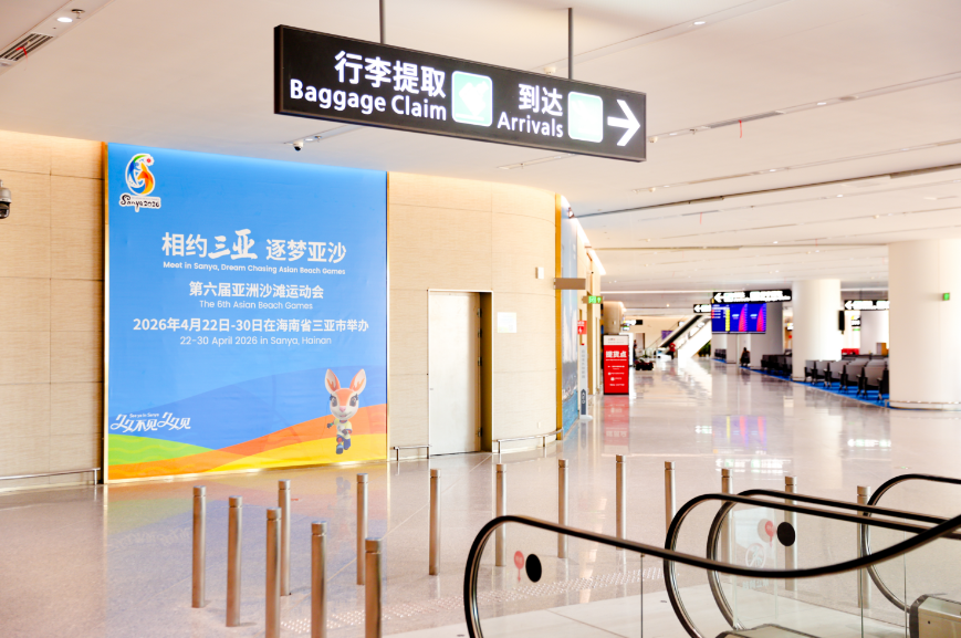 2月1日起,三亚凤凰国际机场T3航站楼正式开启试运行。该航站楼多处张贴着第六届亚洲沙滩运动会海报,成为新晋亚沙打卡点。