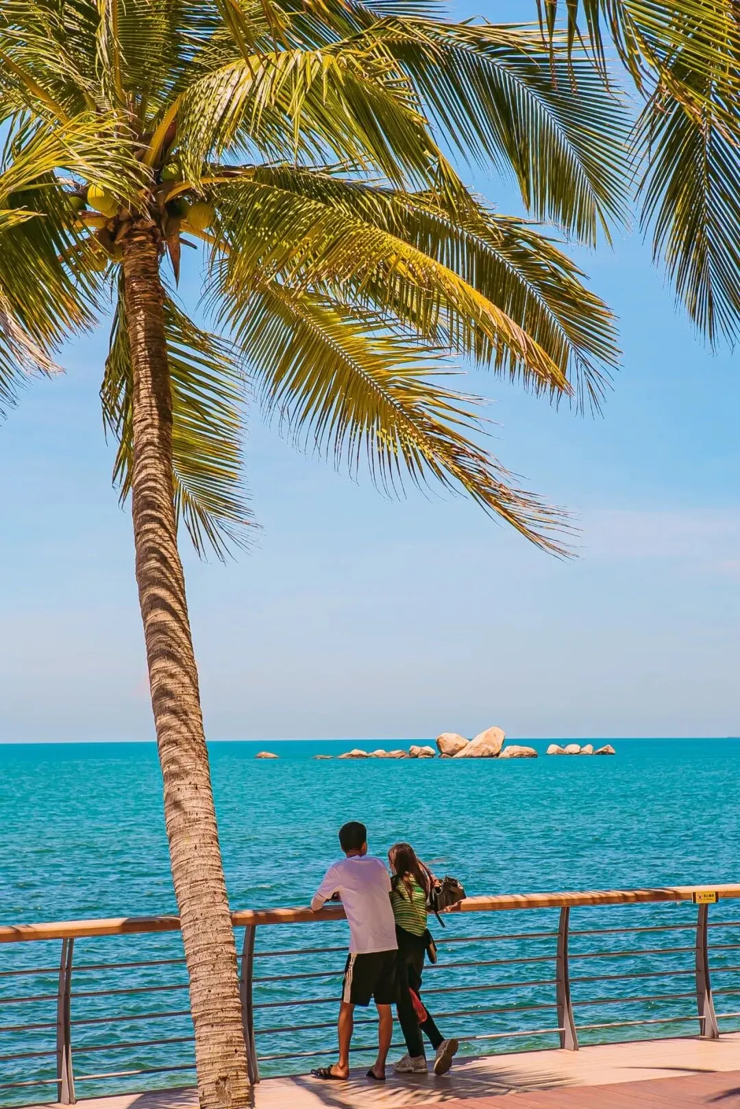位于海滨步道中段,形似日月的礁石象征“日月同辉,相伴一生”,是情侣必打卡的爱情地标。