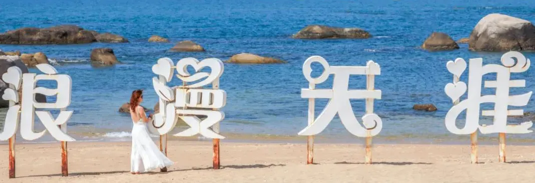 景区灵魂,打卡建议选择退潮时段从侧面绕行,傍晚的柔和阳光斜照在朱红字体上,与湛蓝海水形成鲜明对比,出片率极高。