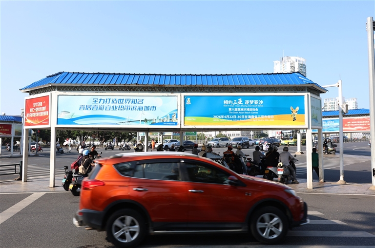 在三亚交通路口,宣传海报格外醒目。