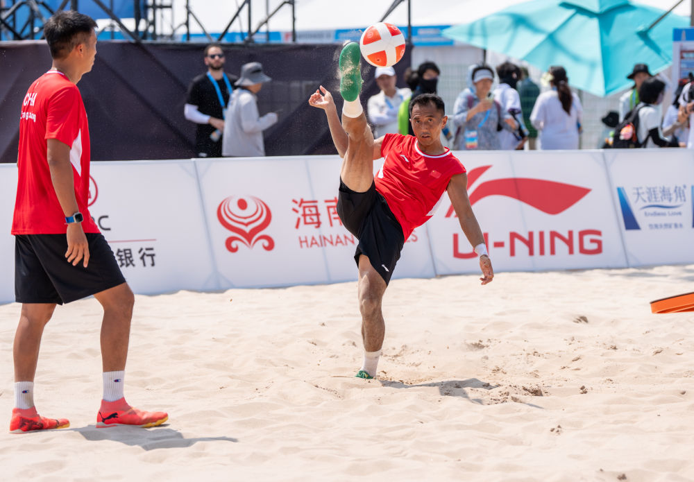 在三亚亚沙会的赛场上,中国队的实力不足以争夺奖牌,但他们每一次精准的头球接力、每一记有力的凌空扣杀,都在为这项小众运动“打call”。就像队员们说的,虽然现在练的人不多,但只要体验过用身体“当球拍”,在球桌上完成一次精彩配合,就会爱上这项运动。或许未来某天,我们也能在小区、学校的运动场上,看到大家围着台克球桌,体验这份足球与乒乓融合的快乐。