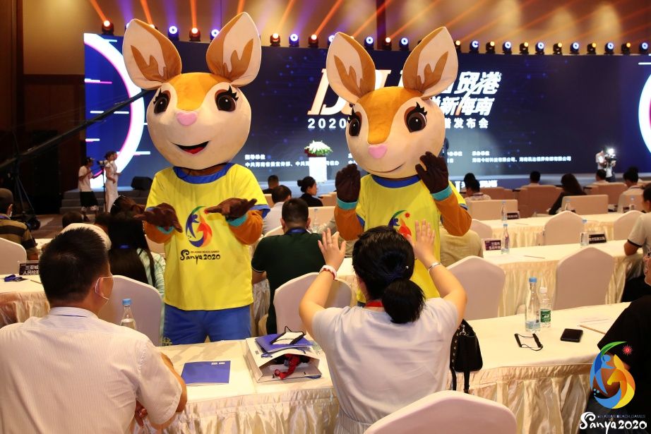 在发布会上,亚沙元素成为会场一道靓丽的风景线。会场不仅设置了“亚沙会为自贸港打call”宣传打卡点,与会嘉宾还能与亚沙会吉祥物“亚亚”亲密互动、合影留念。