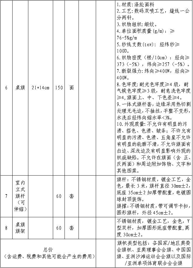 1.项目名称:第六届亚洲沙滩运动会旗帜及相关配件项目