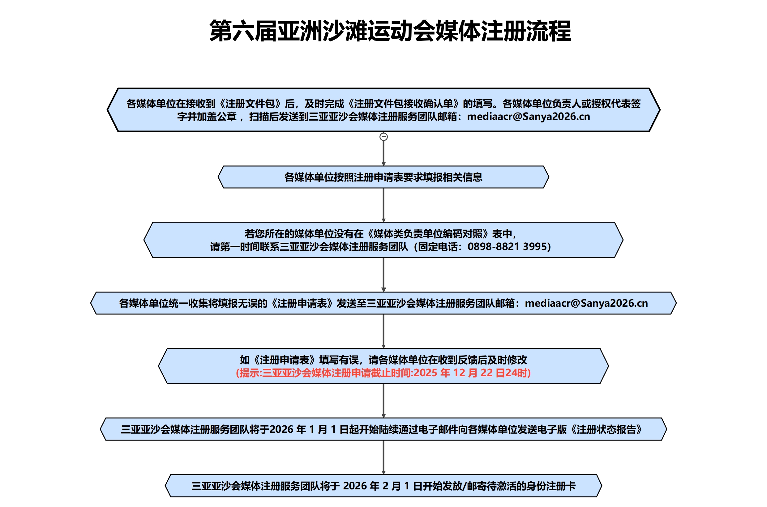 4.注册报名相关详细要求,可参照《三亚2026年第六届亚洲沙滩运动会媒体注册指南》执行,如有补充说明将通过官方渠道另行通知。