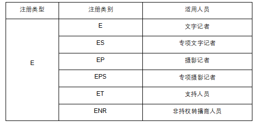各新闻单位需参照《三亚2026年第六届亚洲沙滩运动会媒体注册指南》要求,组织本单位拟参与报道的记者完成相关注册材料填报,填写《第六届亚洲沙滩运动会注册申请表》、《注册报名汇总表》和《注册文件包接收确认单》。《注册报名汇总表》和《注册文件包接收确认单》应加盖新闻单位公章。注册类别如下: