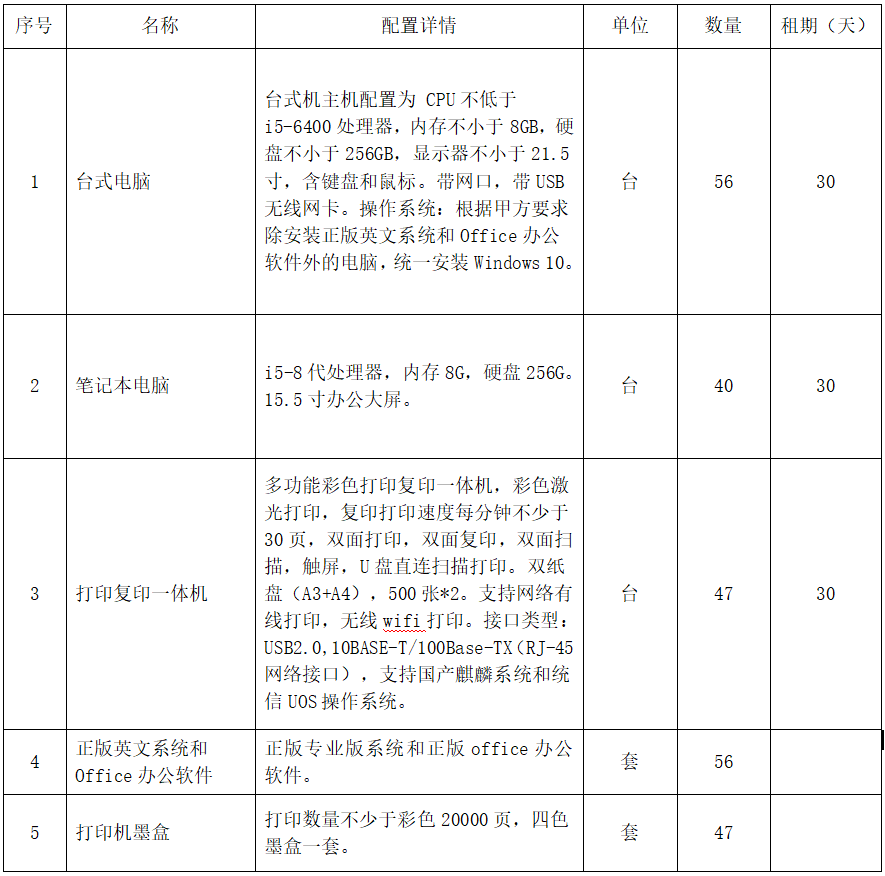 1.项目名称:第六届亚洲沙滩运动会赛时电脑及打印机租赁服务