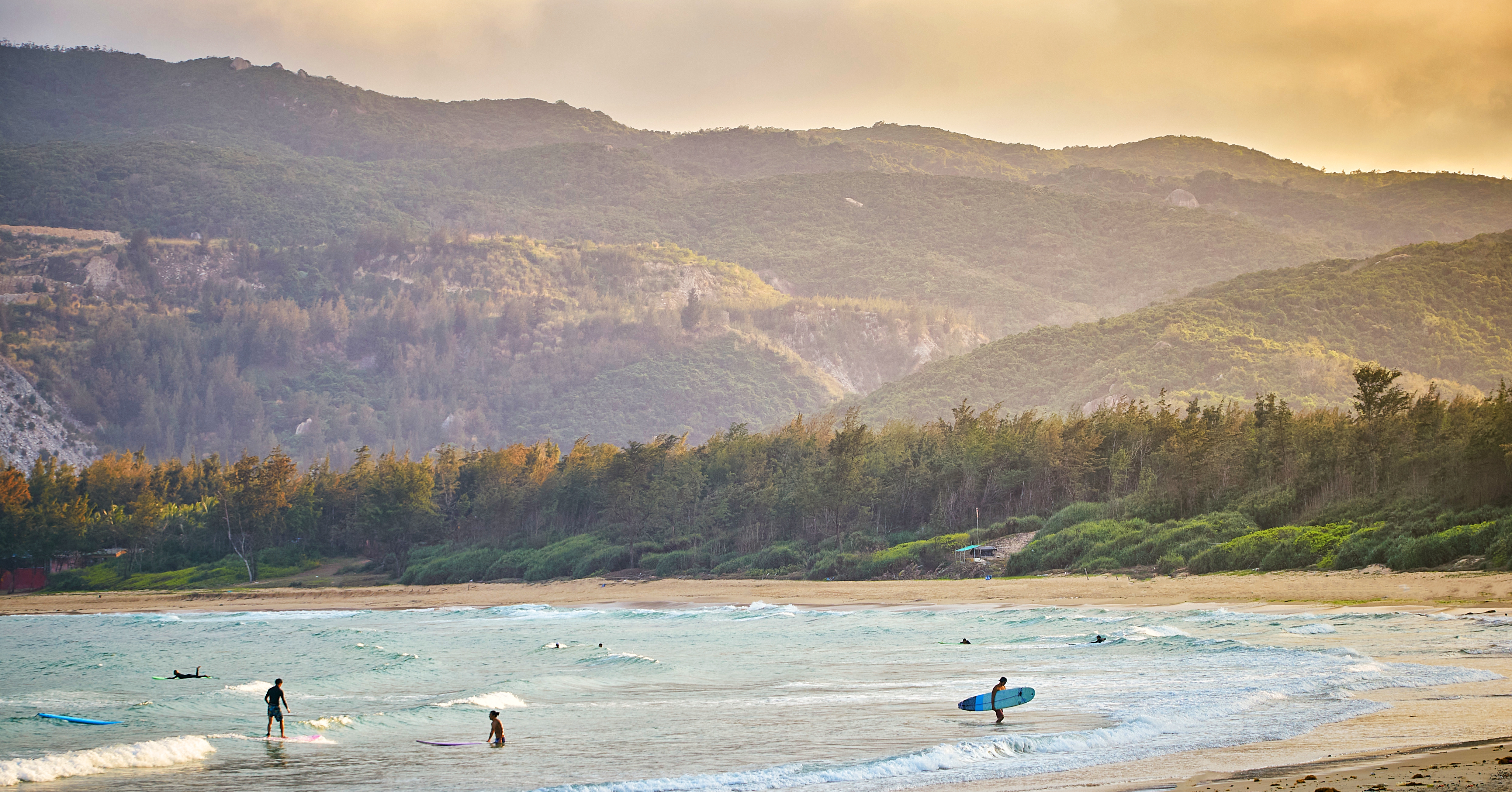 三亚后海村,不少冲浪爱好者到此练习冲浪。