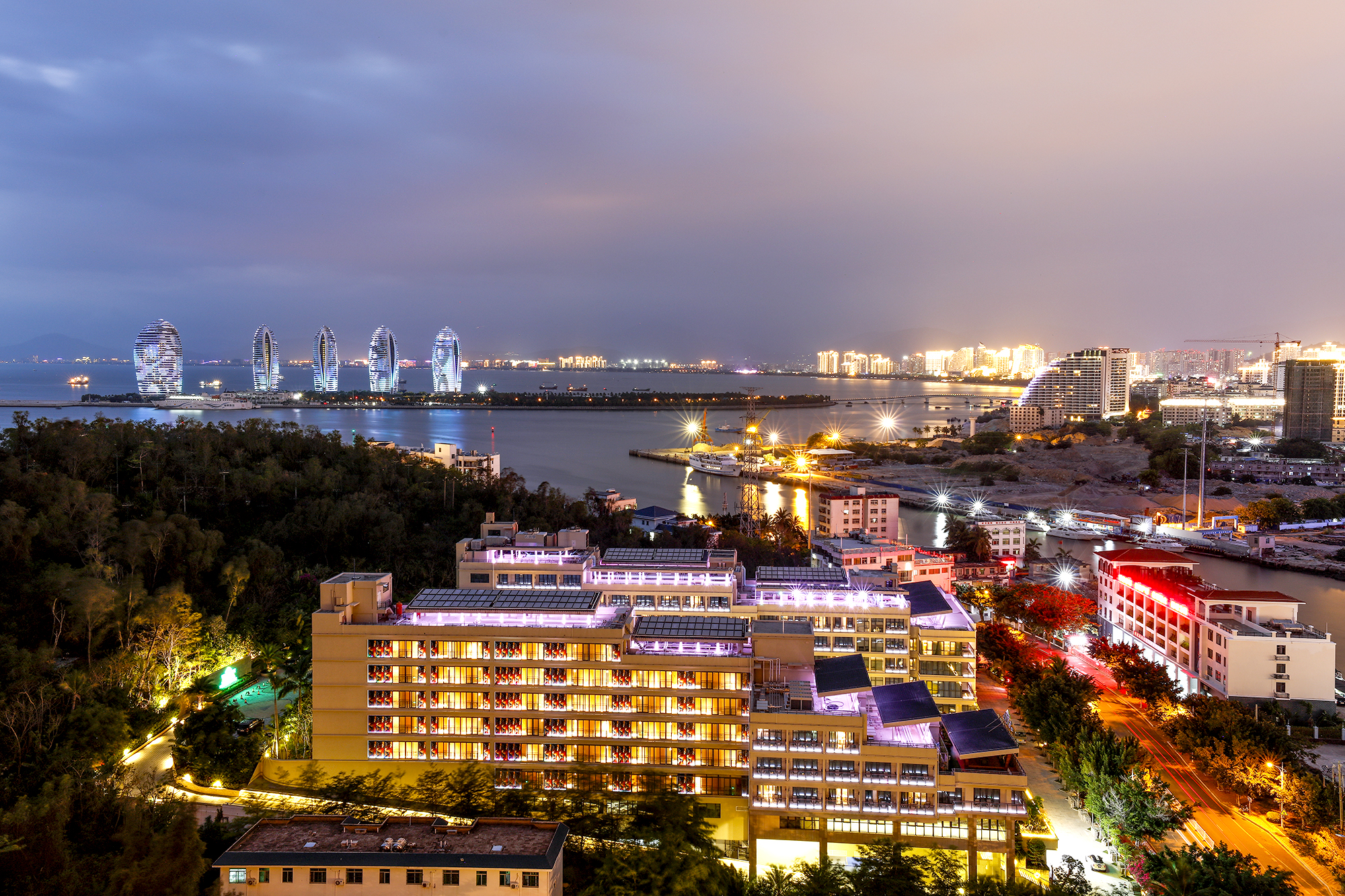 夜幕下的亚特兰蒂斯酒店如同一颗璀璨的明珠。 封烁摄