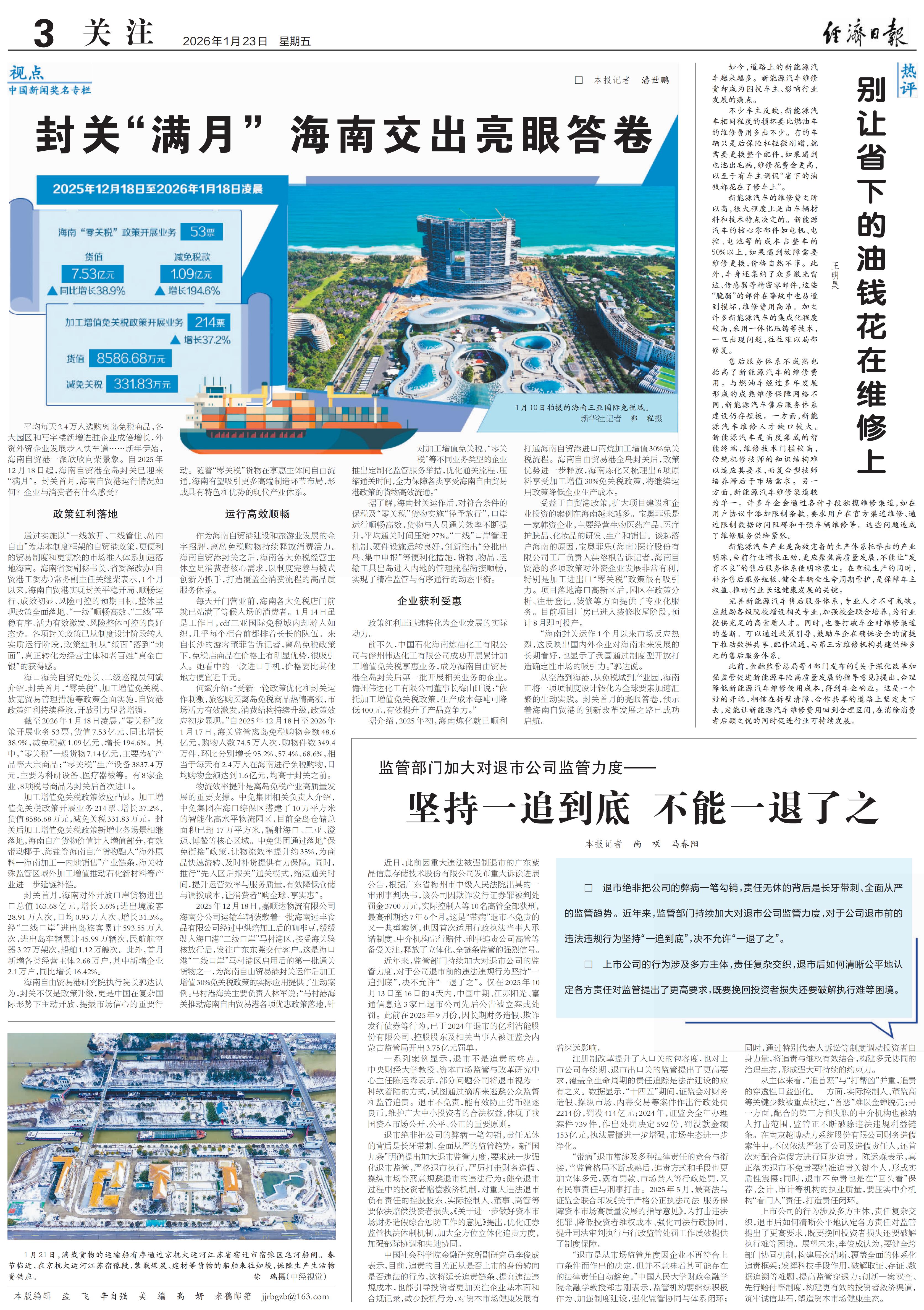 《经济日报》2026年1月23日第3版版面图