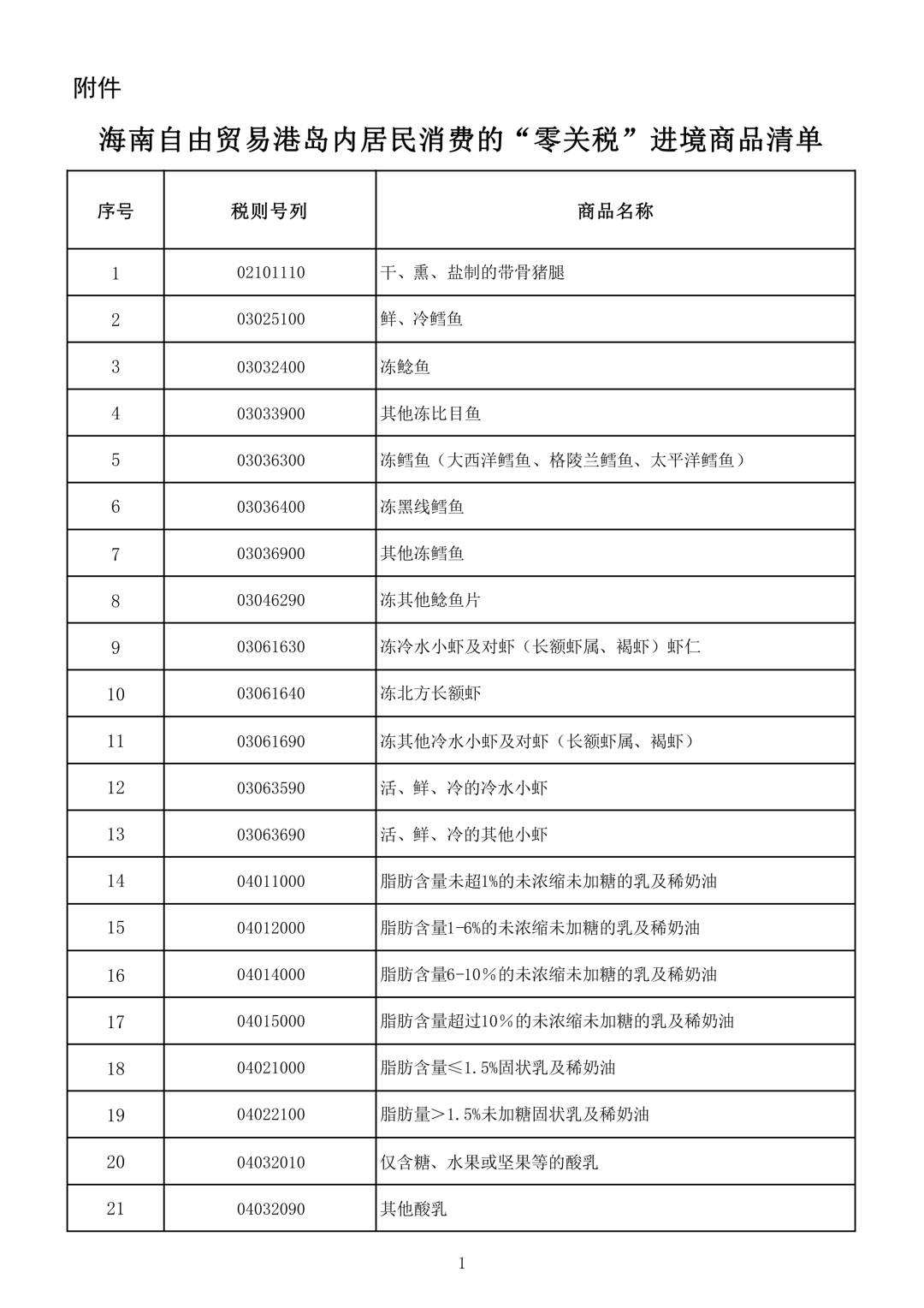 附件:海南自由贸易港岛内居民消费的“零关税”进境商品清单