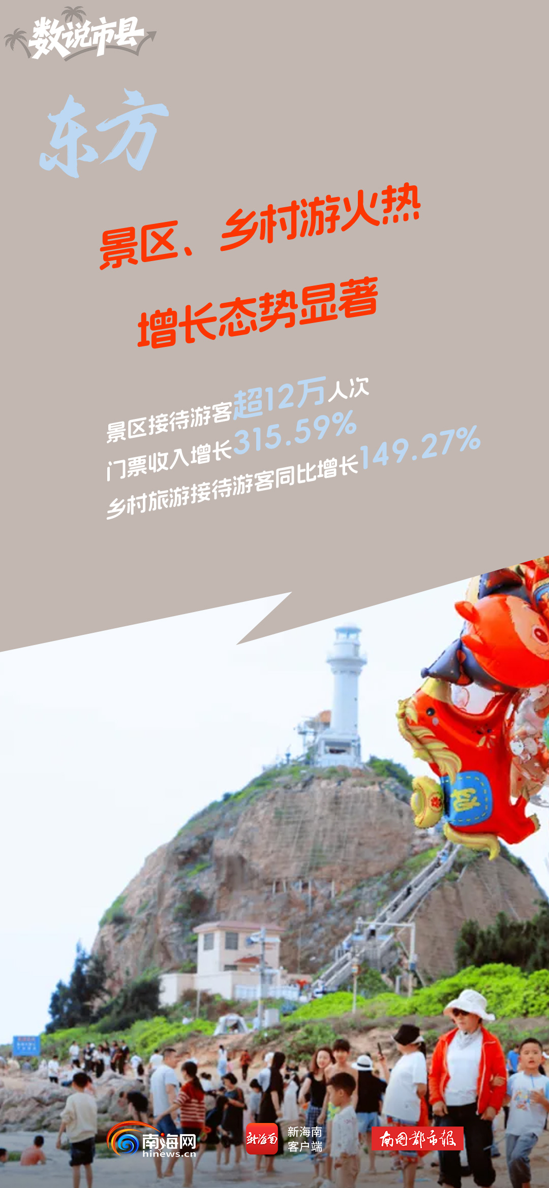 今年春节假期,东方共接待游客42.7万人次,同比增长22.13%;旅游总花费约3.37亿元,同比增长34.04%。