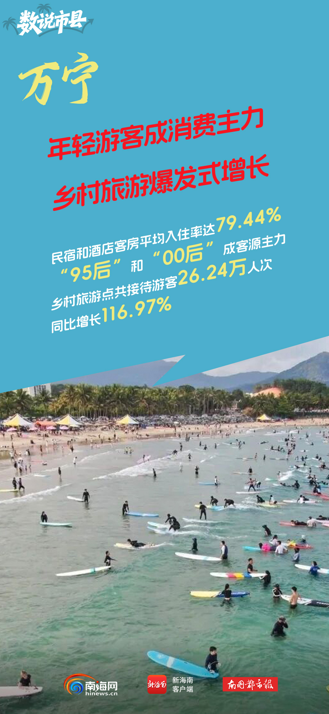 今年春节假期,万宁接待游客132.88万人次,同比增长34.74%,实现旅游总花费10.31亿元,同比增长39.42%。